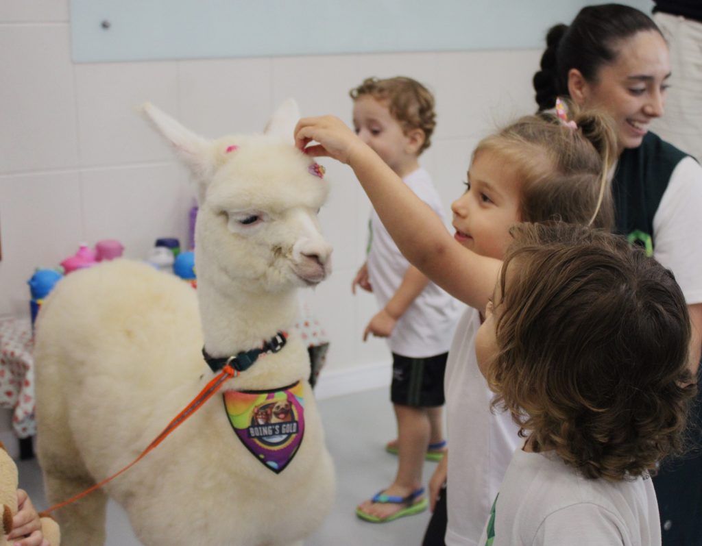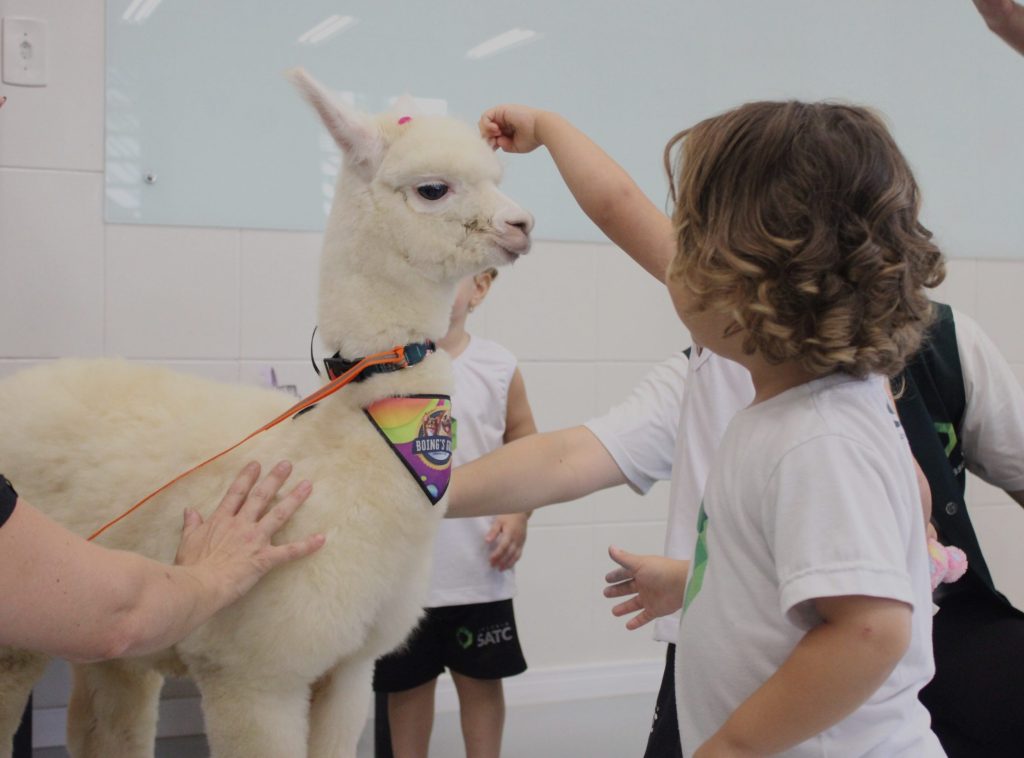 Mais do que proporcionar alegria, os animais podem contribuir para o bem-estar emocional dos estudantes, promovendo valores como empatia, respeito e cooperação. “Tivemos a ideia de trazer a Juju para essa primeira semana de aula, para ser um momento diferente na rotina dos pequenos. Estamos no processo de adaptação escolar, em que recebemos crianças de dois a cinco anos, e ter um animalzinho com eles ajuda muito. A alpaca tem essa característica dócil, por isso ela vem como forma de afeto e para as crianças criarem esse vínculo com a natureza”, explica a professora de Educação Física do Colégio SATC e tutora da Juju, Fernanda Joaquim.