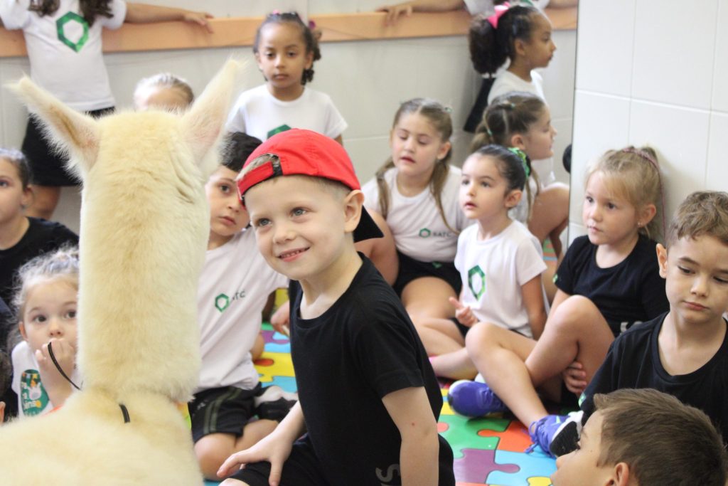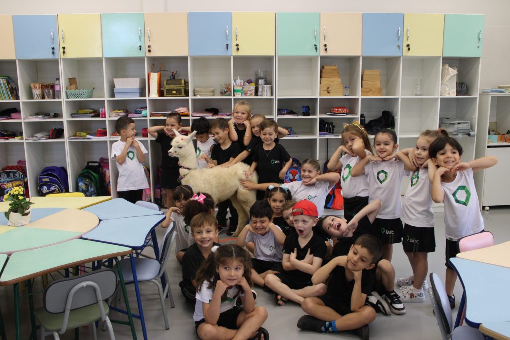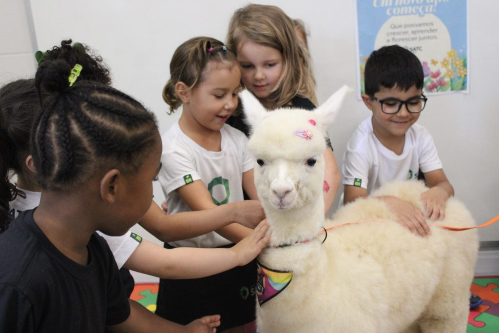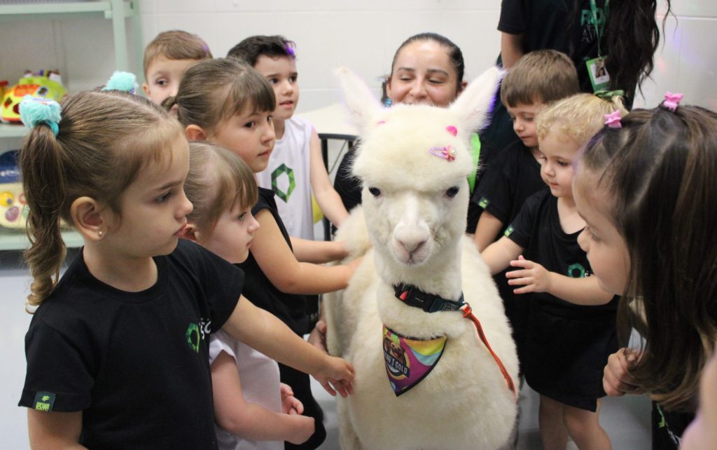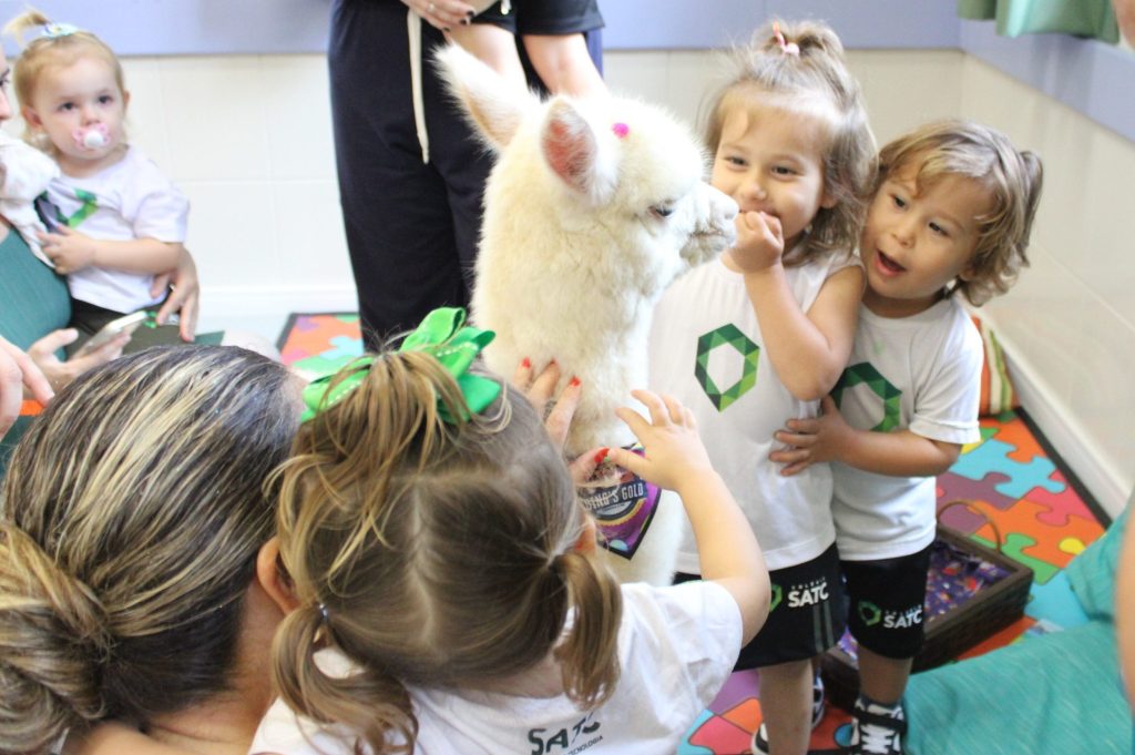 Alunos da Educação Infantil do Colégio SATC, em Criciúma, receberam a visita da alpaca Judith, a Juju, como parte das atividades de adaptação escolar. A iniciativa buscou promover acolhimento, afeto e vínculo com a natureza na primeira semana de aula. Professores destacam que a presença do animal contribui para o desenvolvimento emocional e social das crianças. A ação integrou uma programação especial voltada à recepção dos alunos de dois a cinco anos.