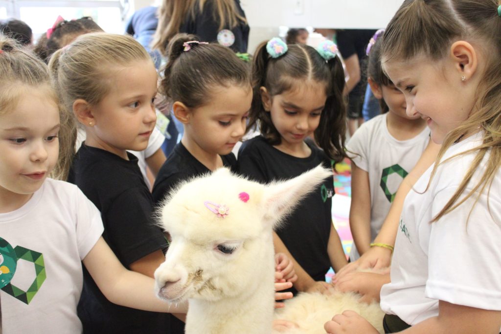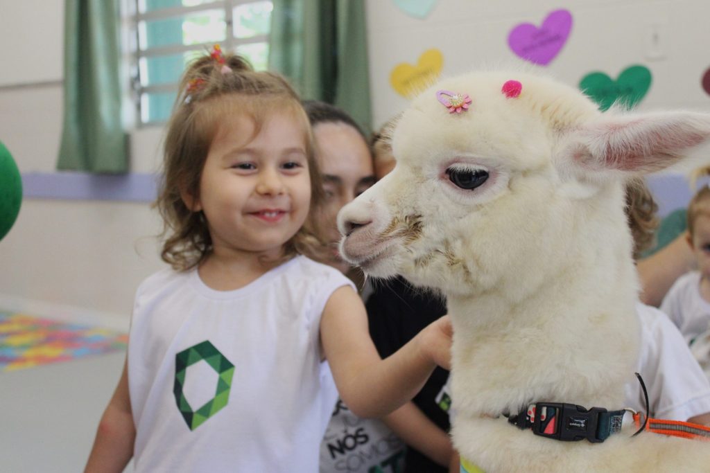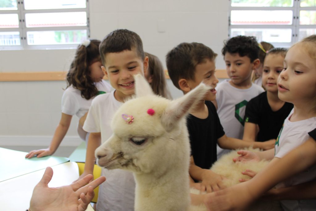 O pequeno Francisco do Prado, do Infantil V, se sentiu encorajado com a presença da visitante. “Nunca tinha visto uma alpaca. O que eu mais gostei foi a fofura dela e do pelo fofinho. Fiquei fazendo muito carinho e não queria que ela fosse embora nunca mais”, conta.