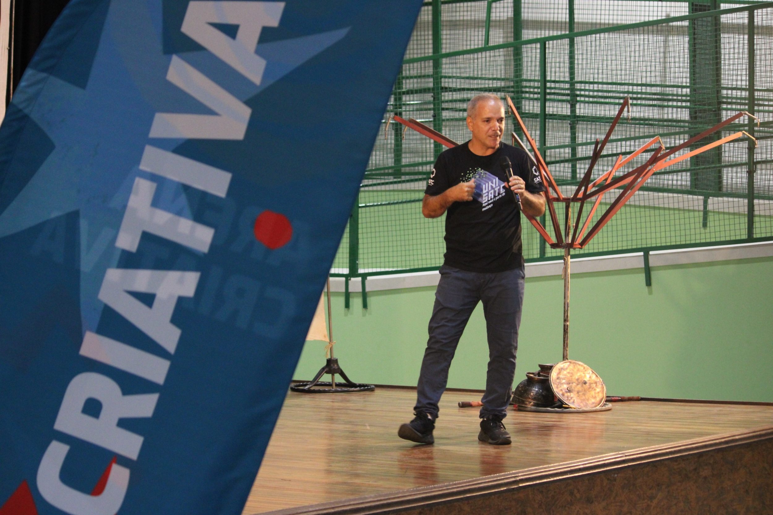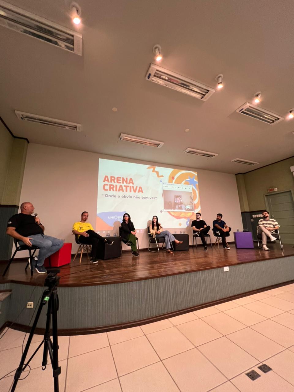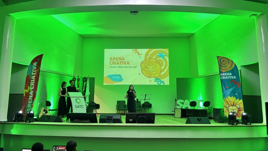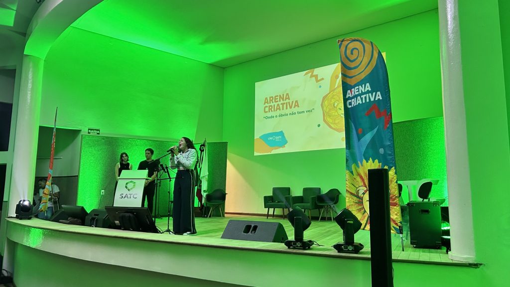 A Arena Criativa, semana acadêmica dos cursos de Comunicação e Negócios do Centro Universitário UniSATC, movimentou os alunos entre os dias 13 e 17 de abril com uma programação voltada à formação profissional e ao contato direto com especialistas do mercado. O evento reuniu estudantes de Design, Jornalismo, Publicidade e Propaganda e Administração em palestras, workshops e atividades interativas. Com o tema ‘Onde o óbvio não tem vez’, a iniciativa retomou seu formato original e buscou estimular a criatividade e o pensamento estratégico dos participantes. A abertura contou com o espetáculo “Para contar estrelas”, do Grupo Cirandela, reunindo alunos de todos os cursos em um momento cultural.