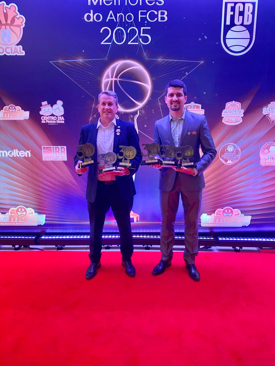 Representando a instituição, o presidente da Sociedade Recreativa Mampituba, Larciney Antônio Fabris, e o coordenador de Rendimento do Núcleo de Esportes, Gustavo de Oliveira, participaram do evento que celebrou o desempenho esportivo e o fortalecimento do basquetebol catarinense.