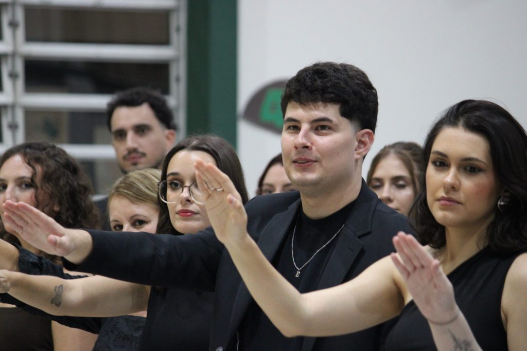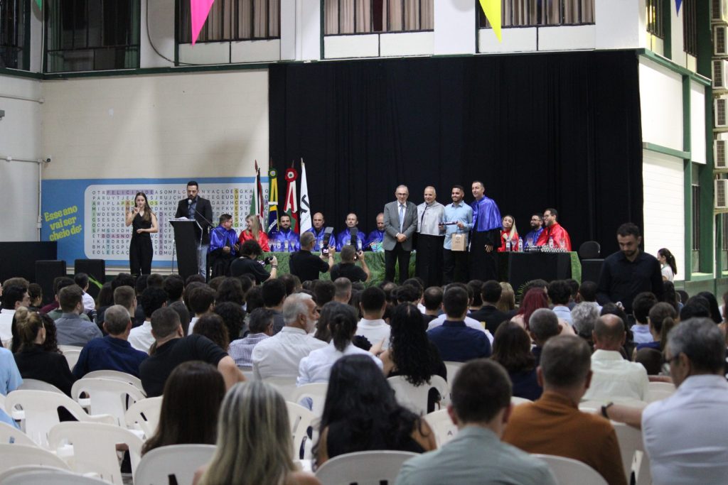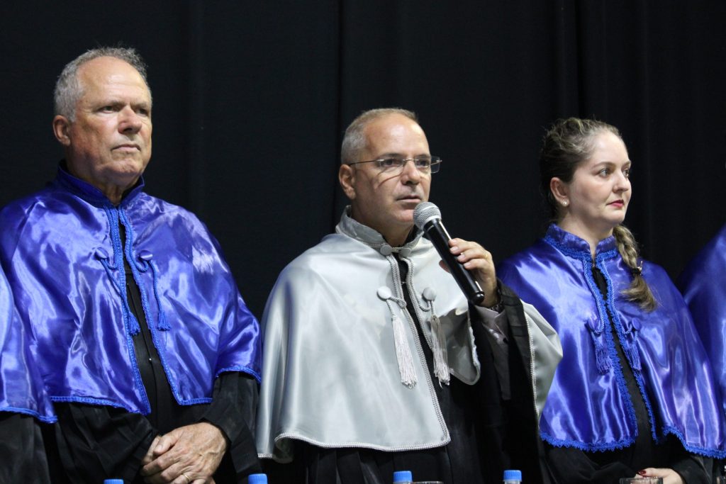 Durante a solenidade, o pró-reitor de Ensino e Extensão da UniSATC, Jovani Castelan, destacou o papel da instituição na formação de profissionais preparados para os desafios do mercado e comprometidos com a sociedade.
