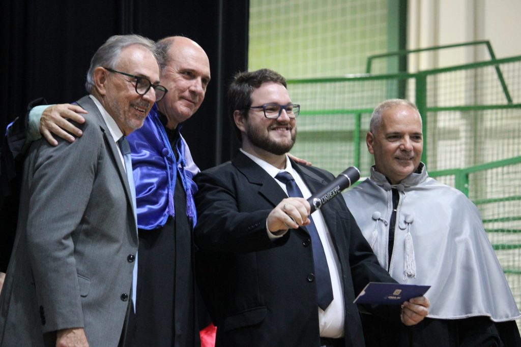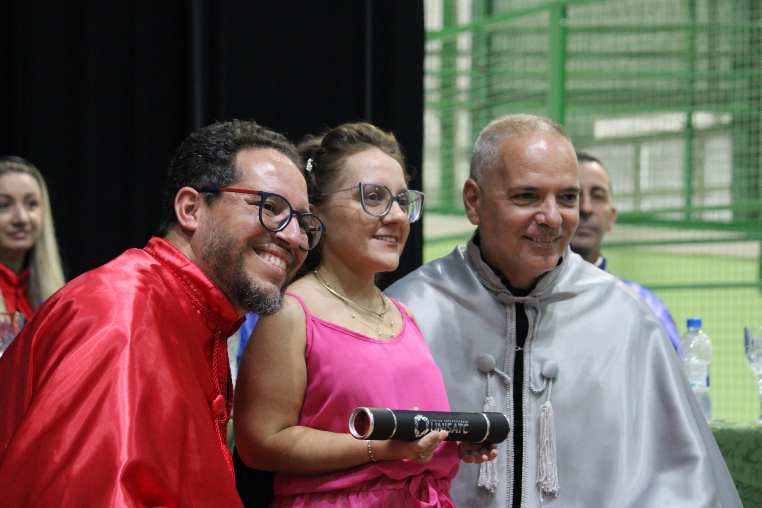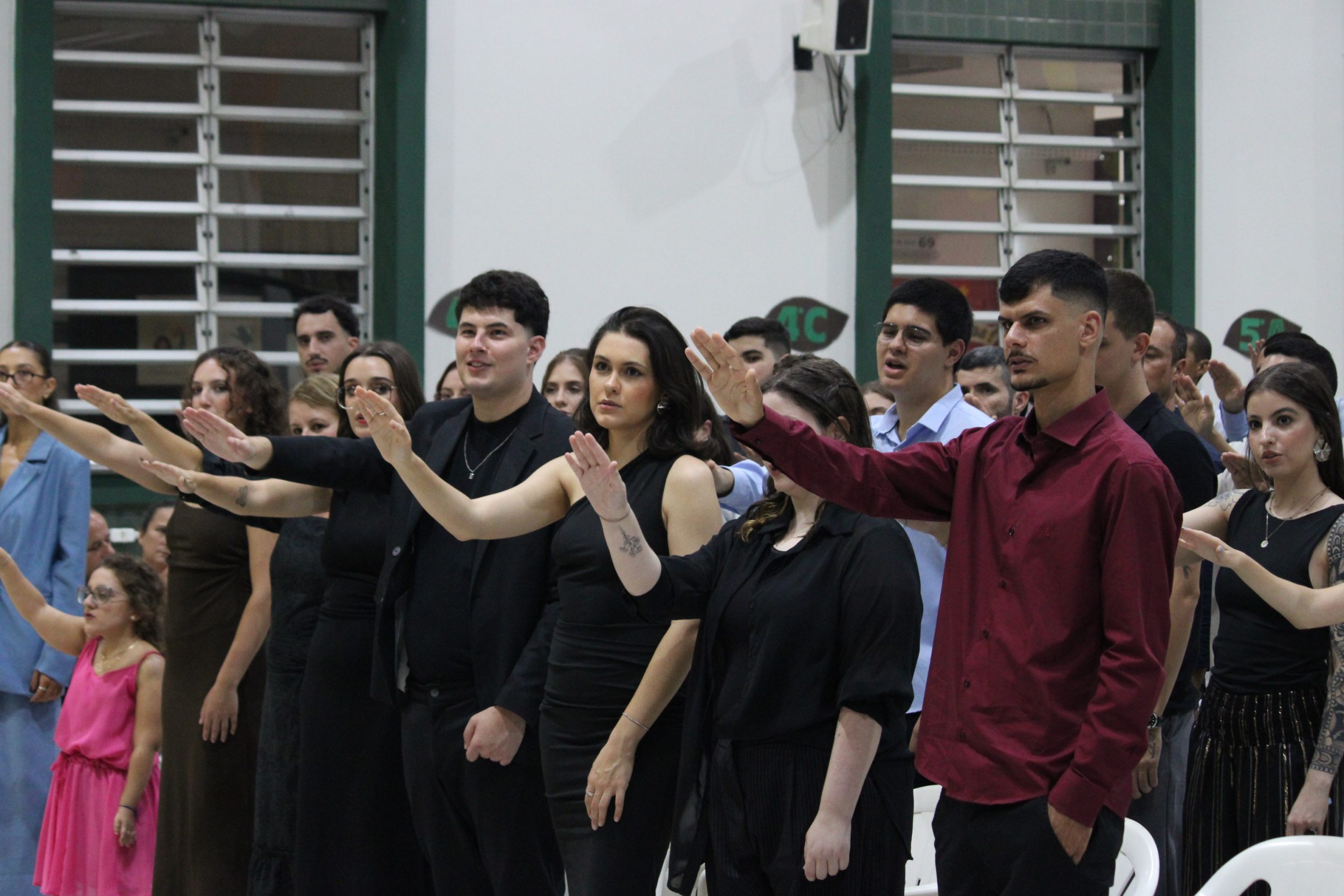 A cerimônia seguiu os ritos tradicionais, incluindo juramento dos formandos, outorga de grau e entrega dos certificados, em um momento marcado pela conquista após anos de dedicação.