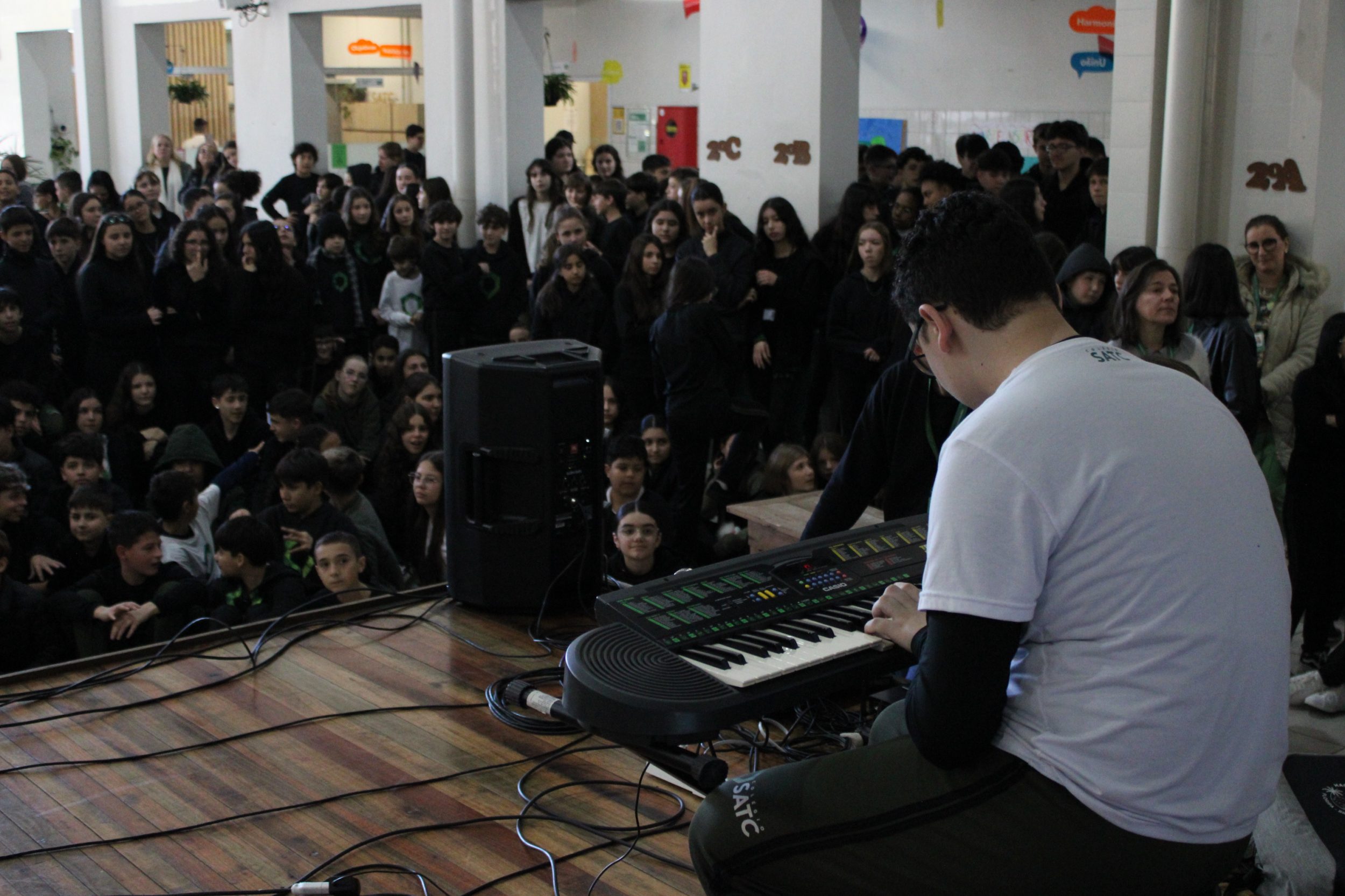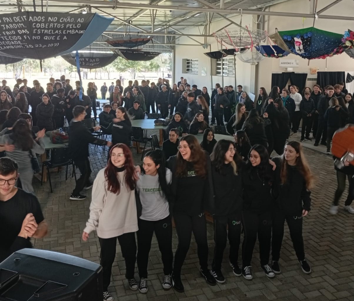 O Dia do Estudante, comemorado nesta segunda-feira (11), foi marcado por ações que reuniram alunos de diferentes níveis de ensino no Colégio Satc. A programação contou com gincanas, apresentações culturais, brincadeiras no pátio e lanches especiais, mantendo o equilíbrio entre o momento de lazer e as atividades escolares. A ação especial envolveu as turmas do Ensino Fundamental Anos Iniciais e Anos Finais, Ensino Médio e Técnico.