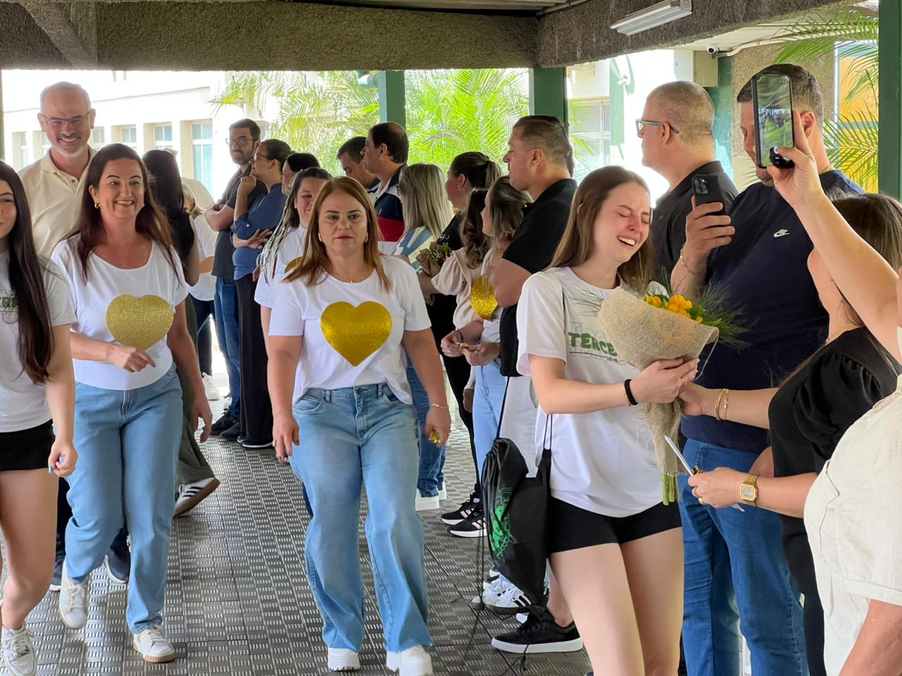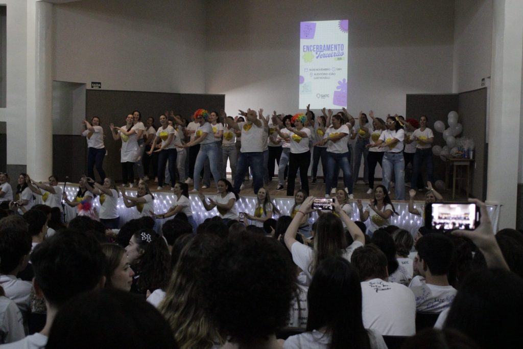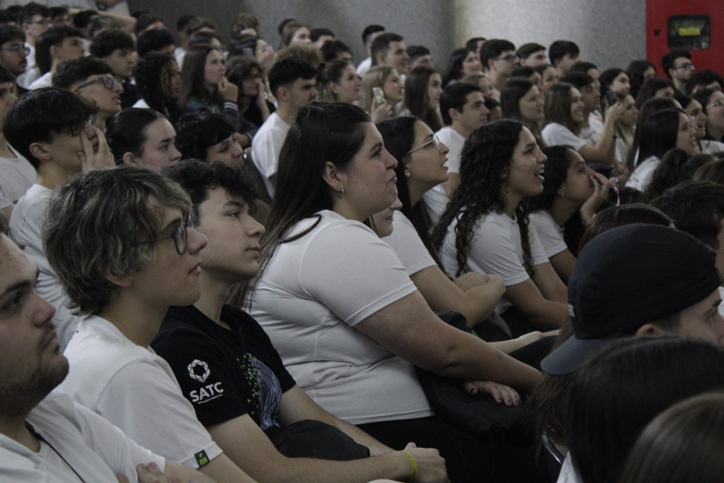 Encerrar um ciclo que para muitos foi de 12 anos não é fácil. Foi essa sensação que preencheu o ambiente na manhã de encerramento do Terceirão do Colégio Satc. Depois de anos na instituição, os alunos se despediram do Ensino Médio em um encontro marcado pela participação de professores e familiares. O momento reforçou o tema ‘Ressignificar’ que guiou o ano letivo na instituição.