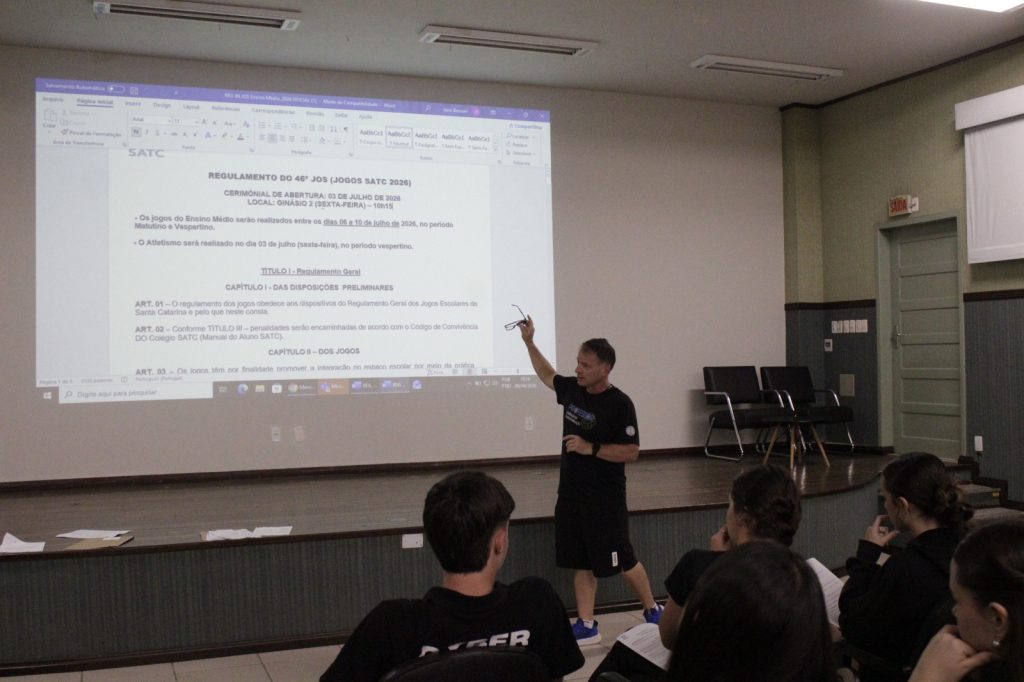 O Colégio SATC lançou a 46ª edição dos Jogos Olímpicos estudantis em encontro com representantes de turma do 6º ano ao Ensino Médio. A ação iniciou a organização das equipes e apresentou o regulamento e as modalidades. O evento destaca a importância do esporte no equilíbrio com as atividades acadêmicas e na integração entre os alunos. A programação ocorre em julho, com diversas modalidades esportivas ao longo de uma semana.