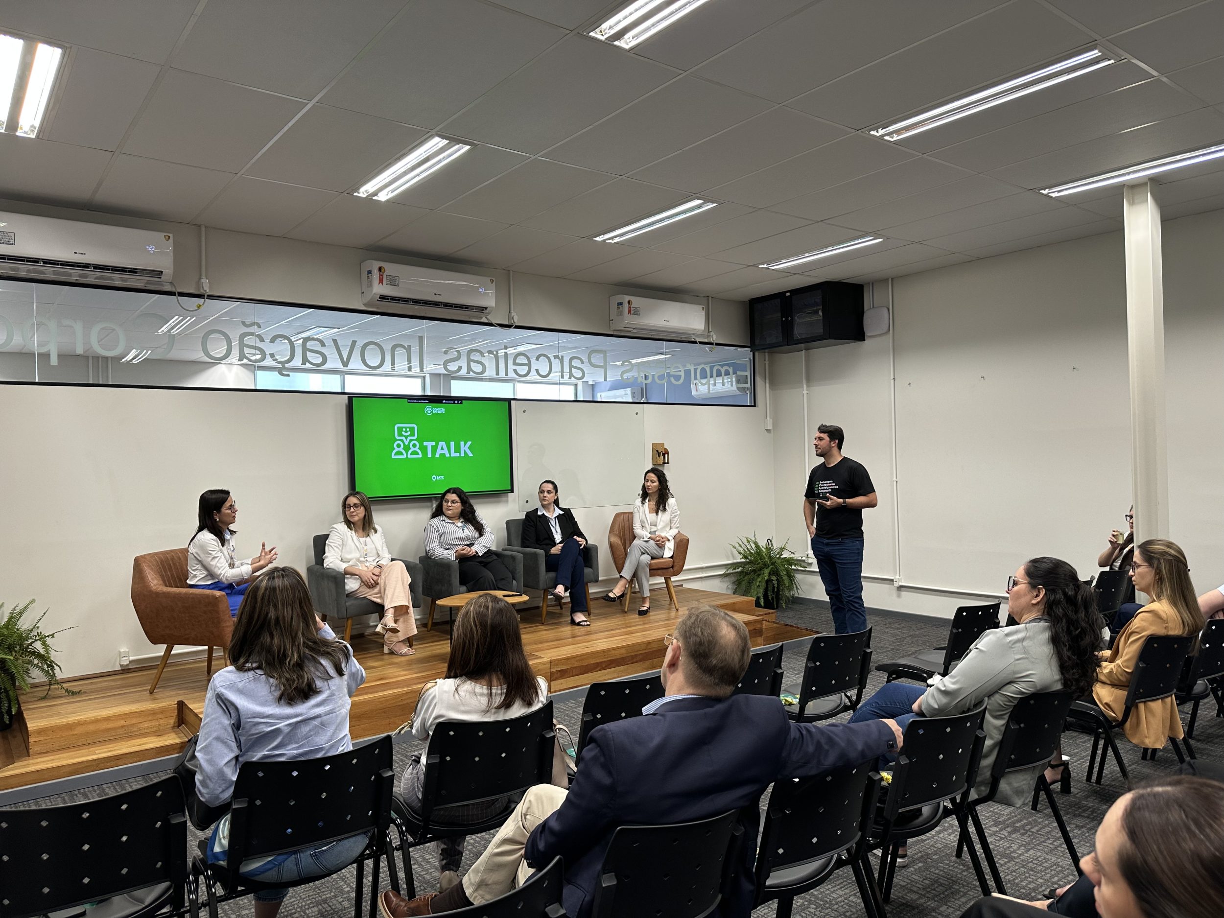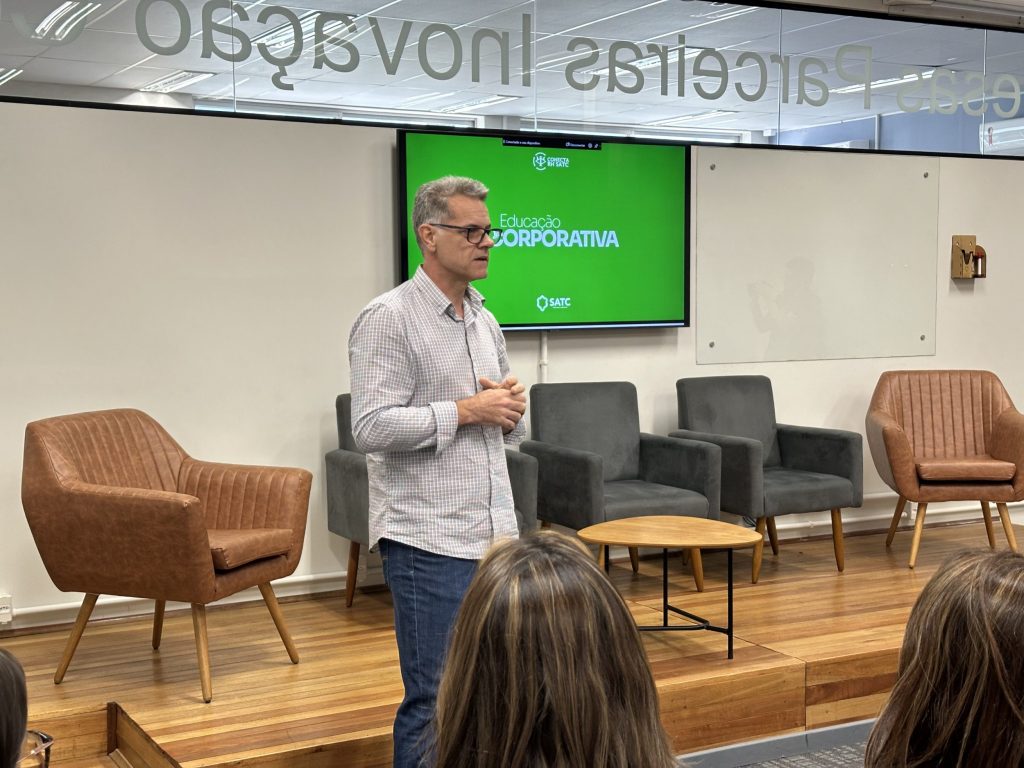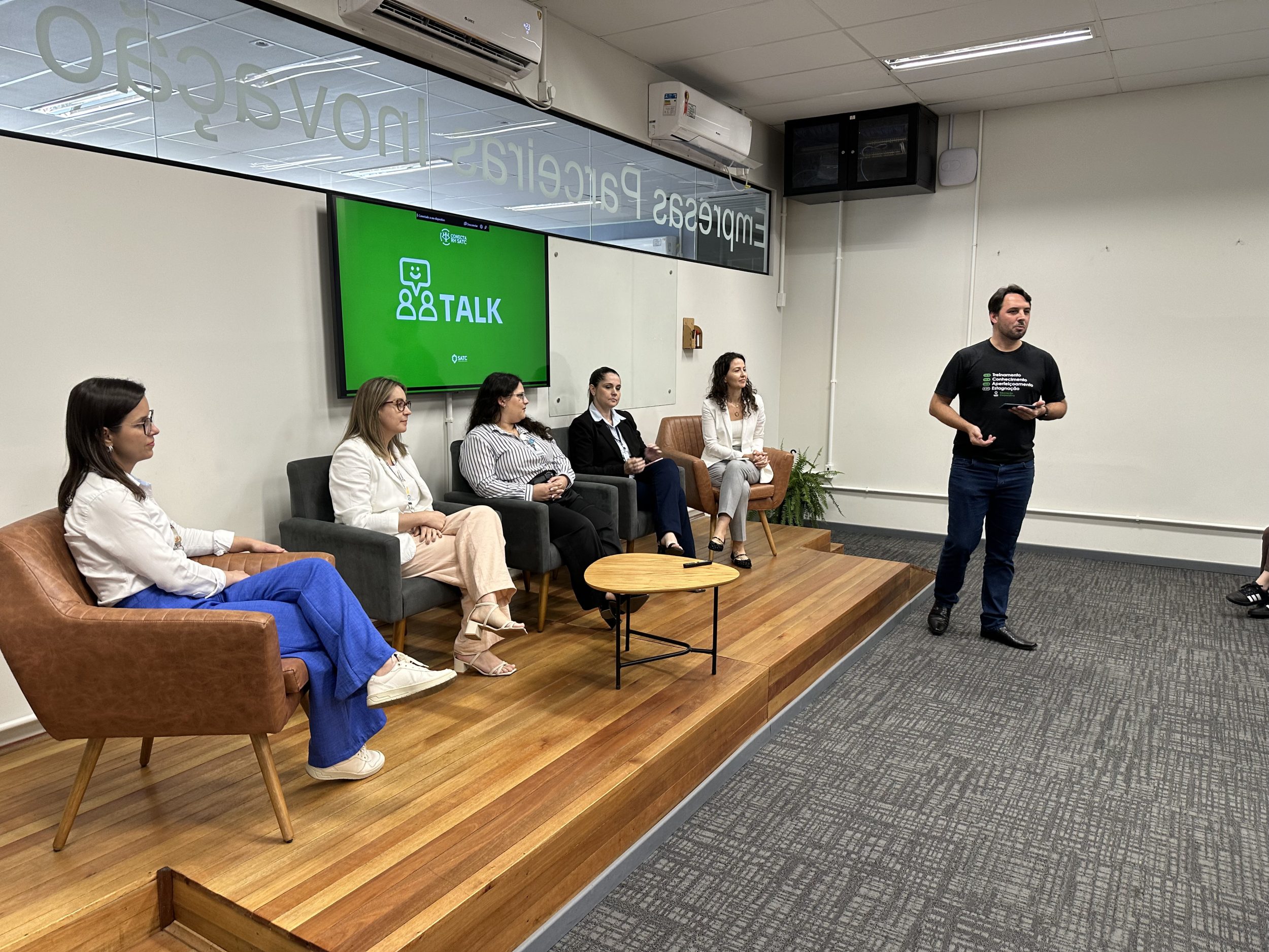 O evento também contou com um talk reunindo representantes da Cooperja, Hybel, Diamante Energia e Hospital São José, que compartilharam experiências práticas sobre gestão de treinamentos, trilhas formativas e projetos personalizados desenvolvidos em parceria com a Satc.