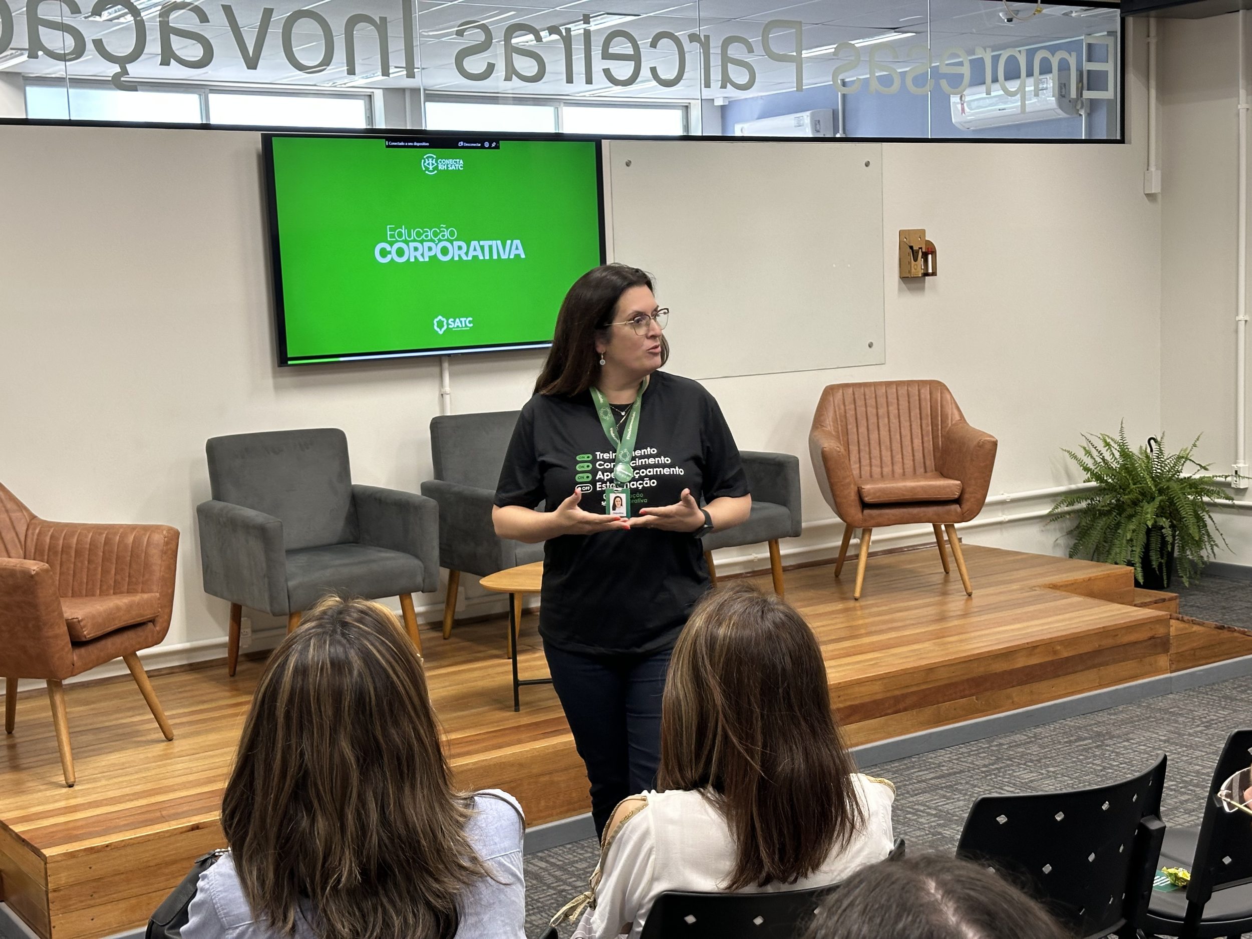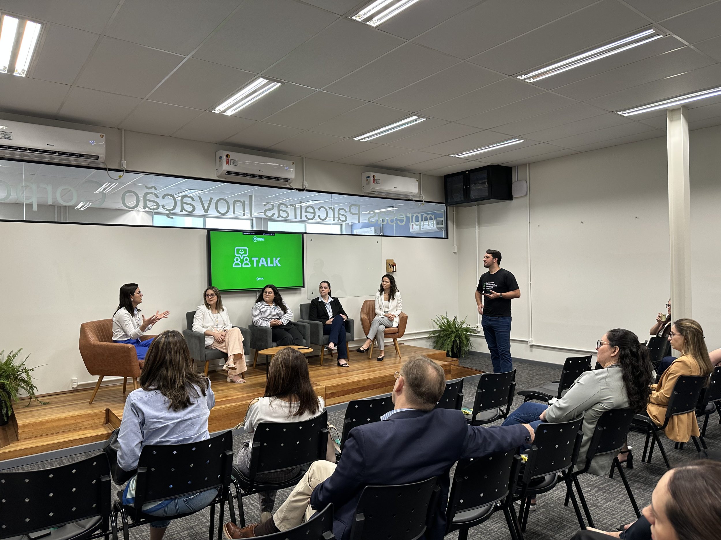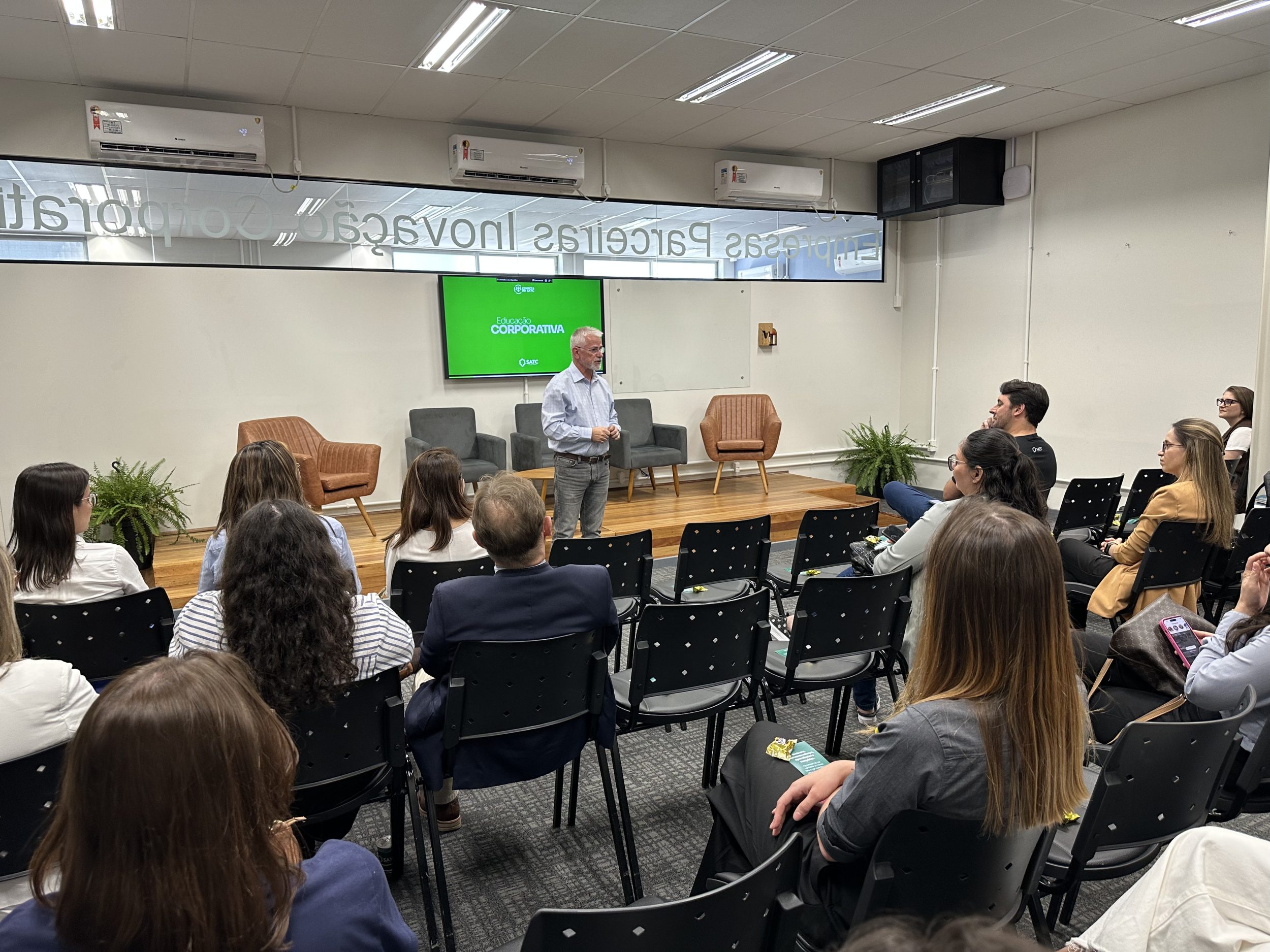 O evento também contou com um talk reunindo representantes da Cooperja, Hybel, Diamante Energia e Hospital São José, que compartilharam experiências práticas sobre gestão de treinamentos, trilhas formativas e projetos personalizados desenvolvidos em parceria com a Satc.
