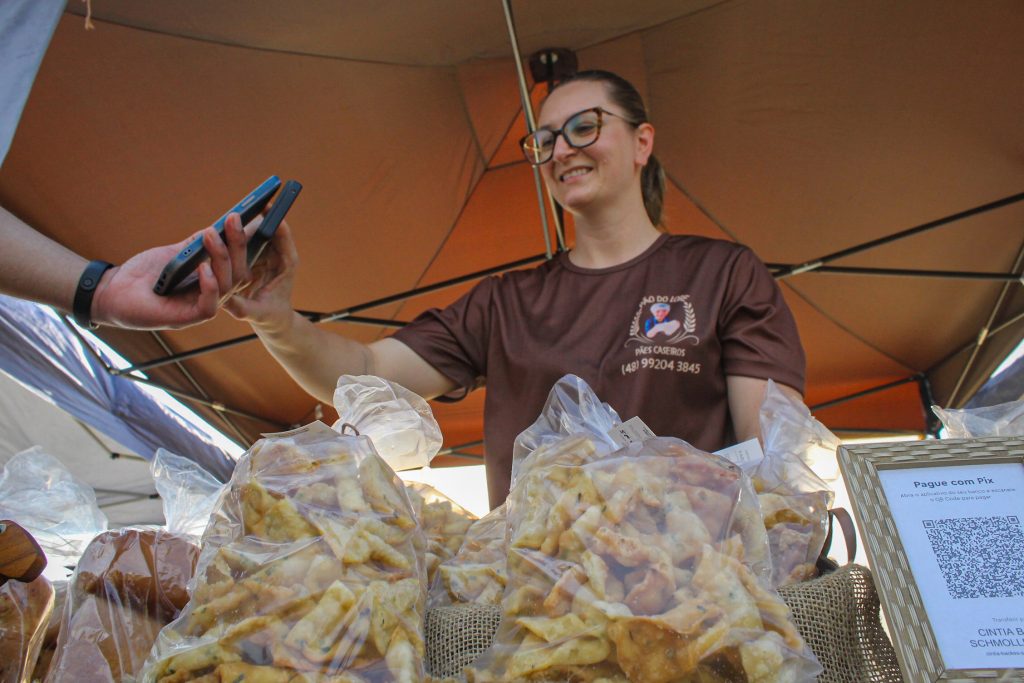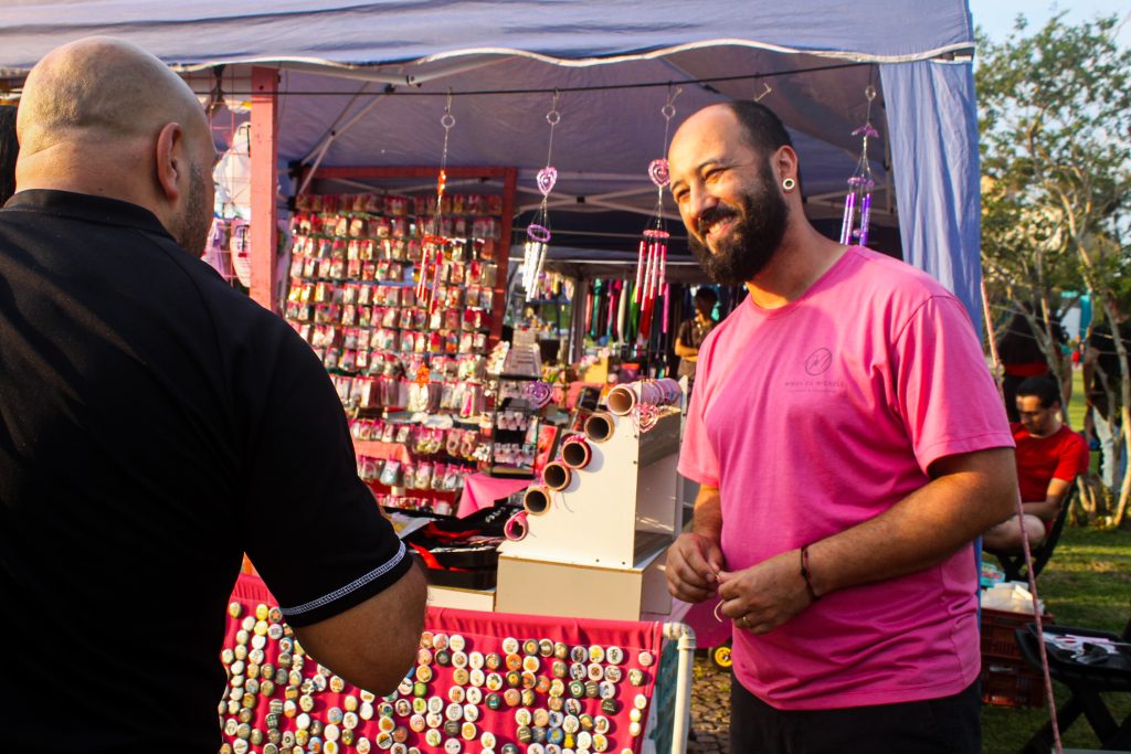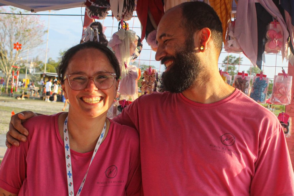 As feiras no Parque da Prefeitura ajudam o casal a impulsionar as vendas e se conectar com o público. “Quando a pessoa tá passeando, pode olhar e falar: ah, achei legal a barraquinha, vou comprar”, conta o marido.
