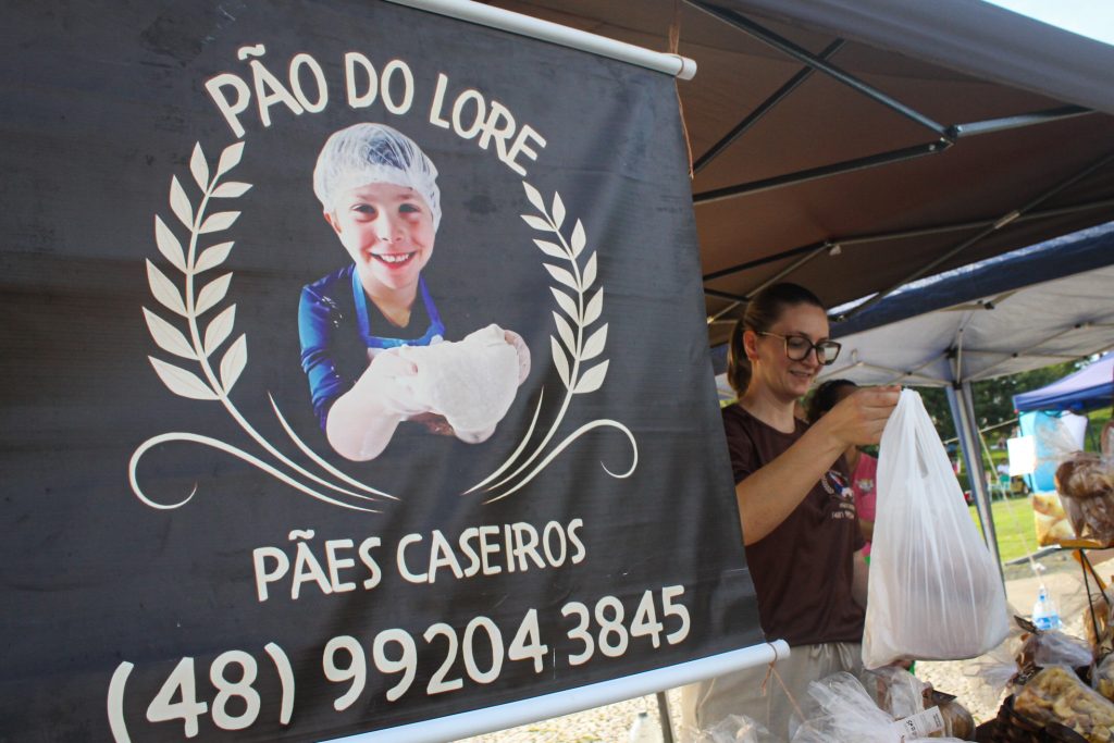 Os pães caseiros vendidos por Cintia Backes Schmoller, de 36 anos, têm um ingrediente especial: o amor por seu filho, Lorenzo, de 6 anos. Diagnosticado com autismo e uma síndrome rara chamada Dandy-Walker, o garoto adora ajudar a mãe a ‘colocar a mão na massa’ e foi dele que surgiu o nome da barraca: ‘Pão do Lore’.
