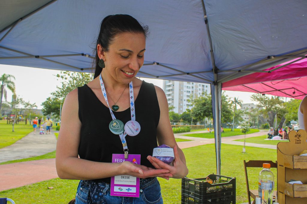 Até mesmo a organizadora da feira, Deise Spader, ergue sua barraca aos domingos. A vice-presidente da Associação Feira Inspirar vende cosméticos e produtos naturais e sempre está presente no primeiro ou segundo domingo do mês.