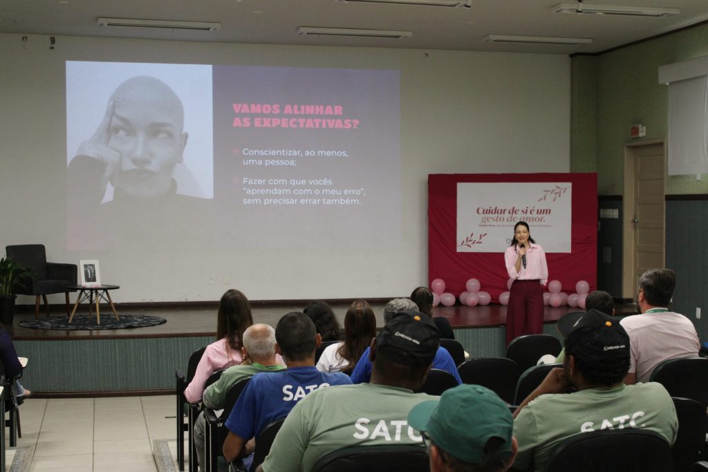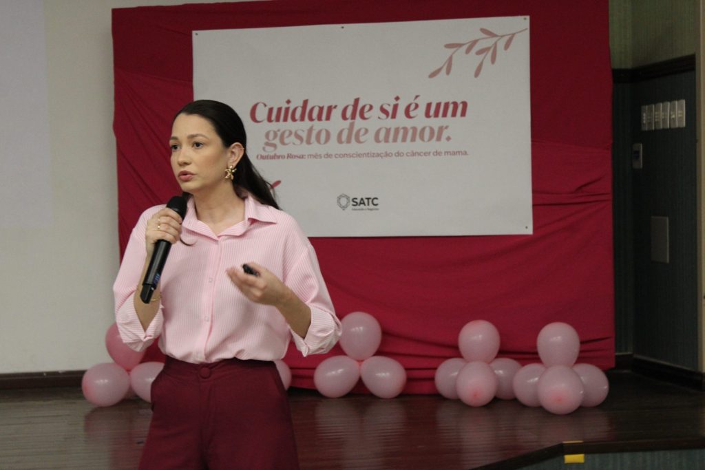 Em um mês conhecido pelos laços cor de rosa e palestras sobre autocuidado feminino, a Satc, em alusão ao Outubro Rosa, compartilhou com os colaboradores uma história de superação. Com o tema: ‘O que um diagnóstico precoce fez por mim’, a assistente de gestão de pessoas da Satc, Isis Horstmann, contou sua trajetória e desafios ao enfrentar o tratamento contra o Câncer de mama. O objetivo do encontro era realizar a conversa de forma leve, conscientizando sobre escuta, prevenção e cuidado.