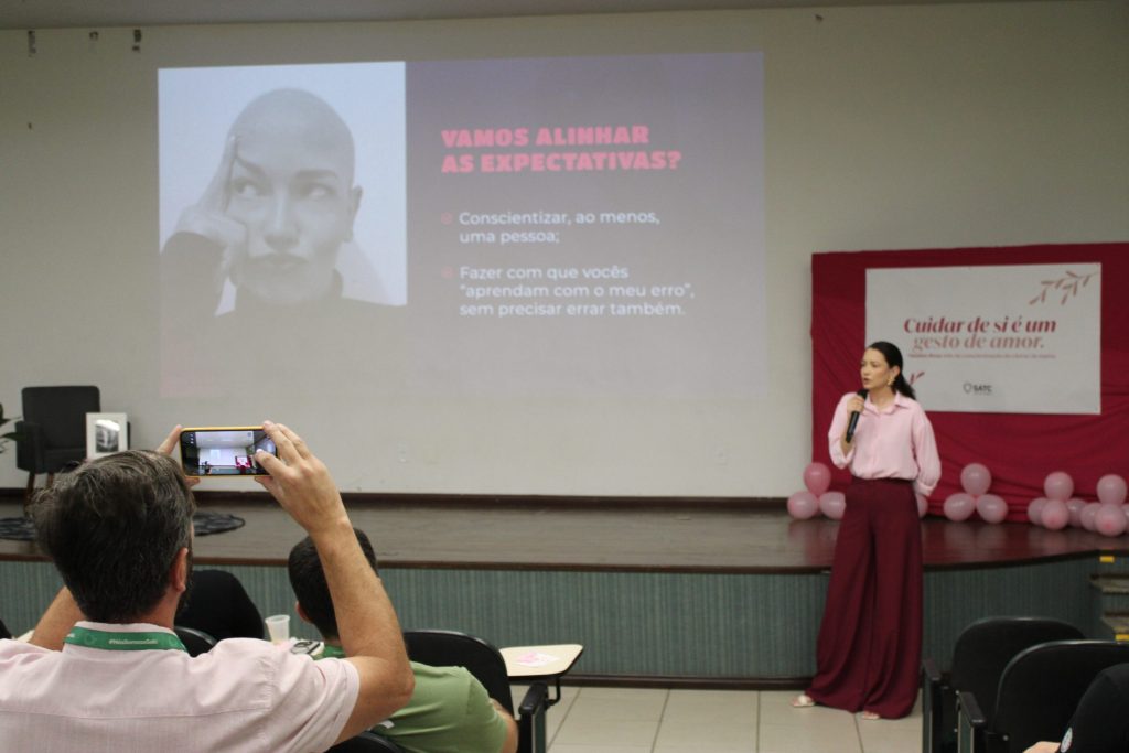 Com emoção e leveza, a palestra realizada na Satc mostrou o impacto do diagnóstico, a importância de olhar para o próprio corpo com atenção e os desafios do tratamento para quem vive e quem acompanha. “Passados dois anos do tratamento, hoje eu entendo que, um dos propósitos dessa vivência foi poder compartilhar minha trajetória com as pessoas a fim de encorajá-las e incentivá-las de todas as formas, desde o autocuidado até o acolhimento a alguém próximo que esteja passando por essa situação”, conta Isis.