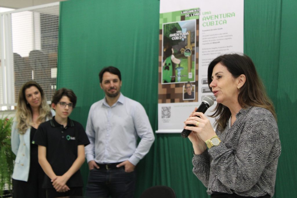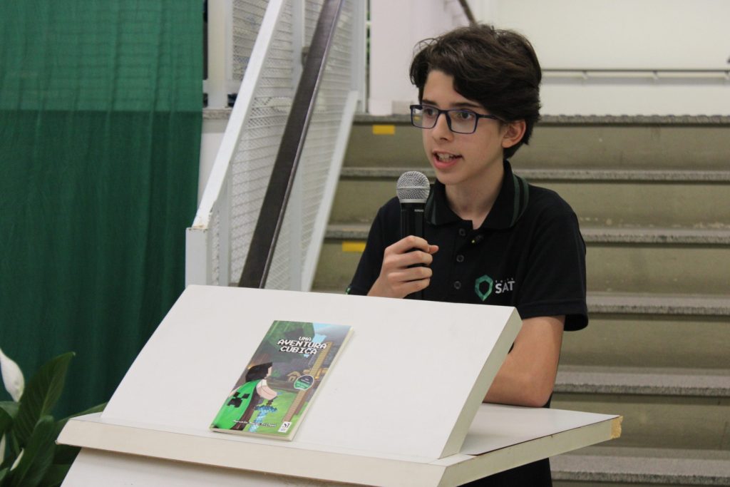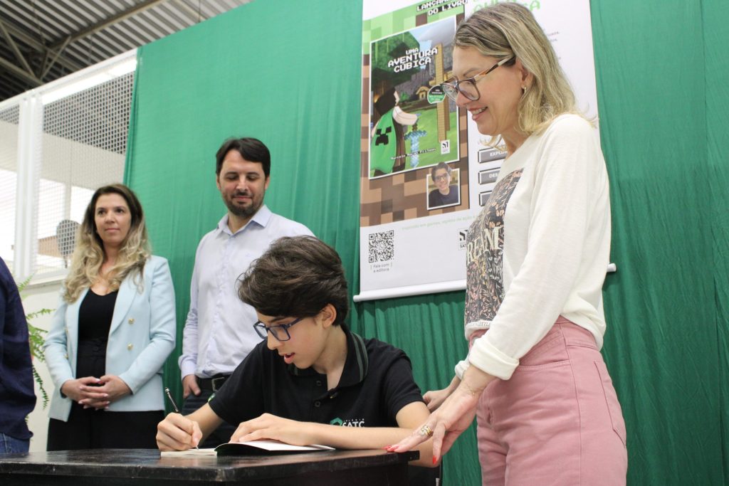 O lançamento do livro “Uma Aventura Cúbica” marcou o início das atividades da editora e trouxe emoção para o jovem autor, Marcelo Macan Fritzen. Aos 13 anos, o estudante compartilhou com os colegas e o público o processo de criação da obra e o sentimento de ver o livro pronto.
