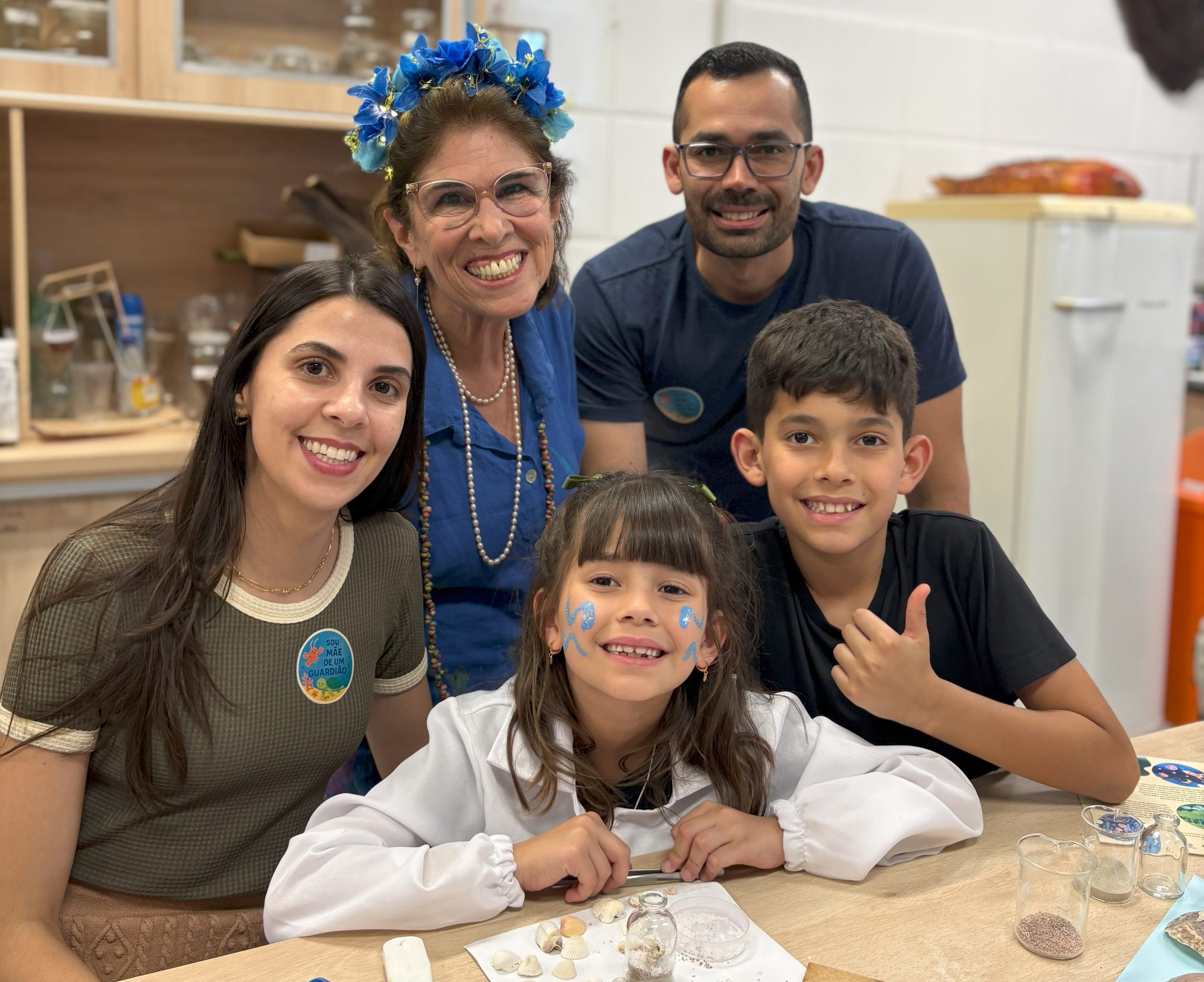 As finalizações do projeto reforçaram essa proposta integradora e envolveram as famílias. Os guardiões da Floresta participaram de atividades no horto e na horta, com colheita e contato direto com a natureza. Já os guardiões do Oceano e das Montanhas vivenciaram experiências em laboratório, explorando conceitos científicos de forma prática. Os guardiões da Galáxia participaram de uma atividade ligada à física, com o lançamento de foguetes construídos pelas famílias.