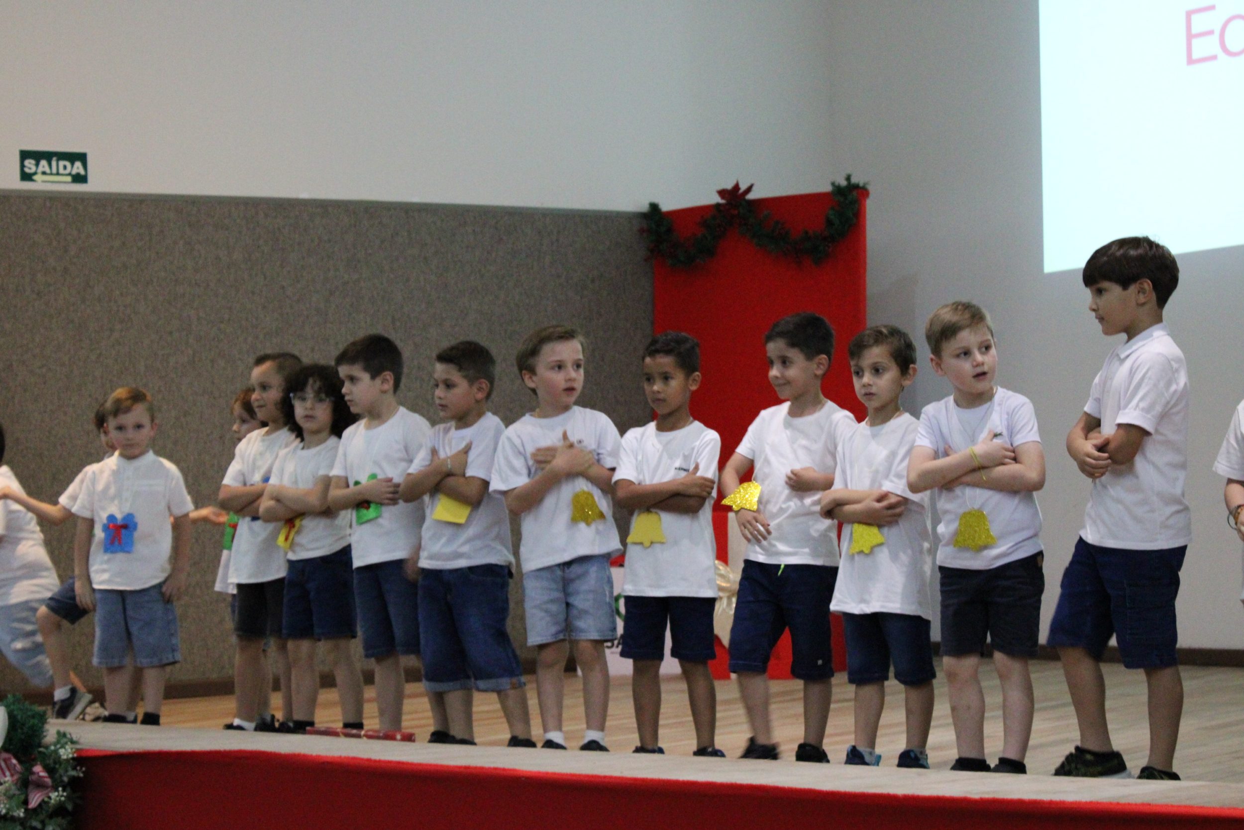 O Infantil IV representou o Pinheirinho, enquanto o Infantil III simbolizou as Estrelas. Já as turmas do Infantil V trouxeram ao palco a representação dos Sinos e dos Presentes.