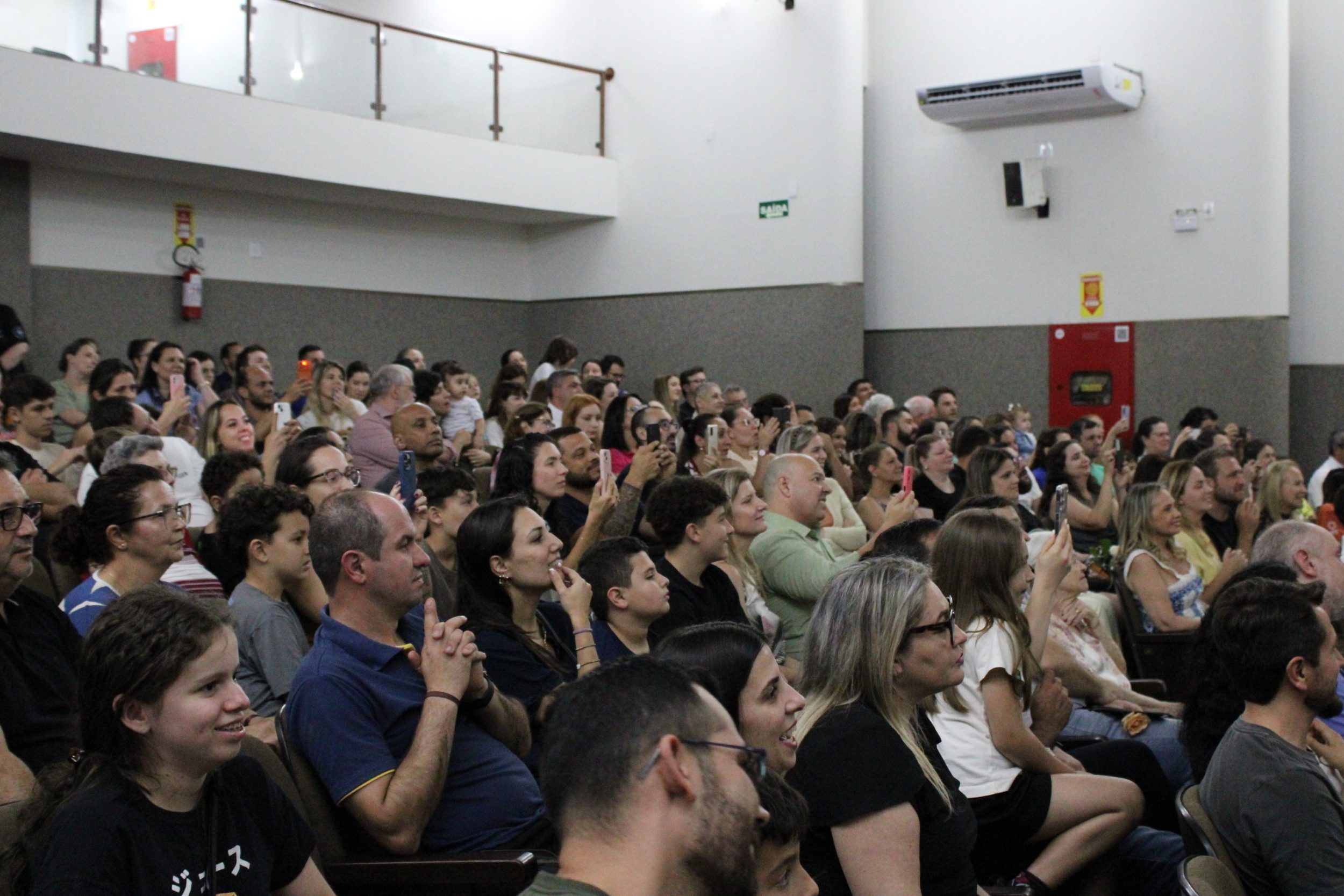 O Colégio Satc realizou o encerramento da Educação Infantil em uma noite que reuniu famílias, equipe pedagógica e crianças das turmas do Infantil III, IV e V. O momento marcou a finalização das turmas do Infantil V, Guardiões das Montanhas e Guardiões dos Oceanos, que em 2026 iniciarão o 1º ano do Ensino Fundamental. Além das homenagens, o encontro também celebrou o evento de Natal com a presença do Papai Noel, que entregou balas, posou para fotos e ouviu os pedidos das crianças, trazendo ainda mais encanto ao encontro.