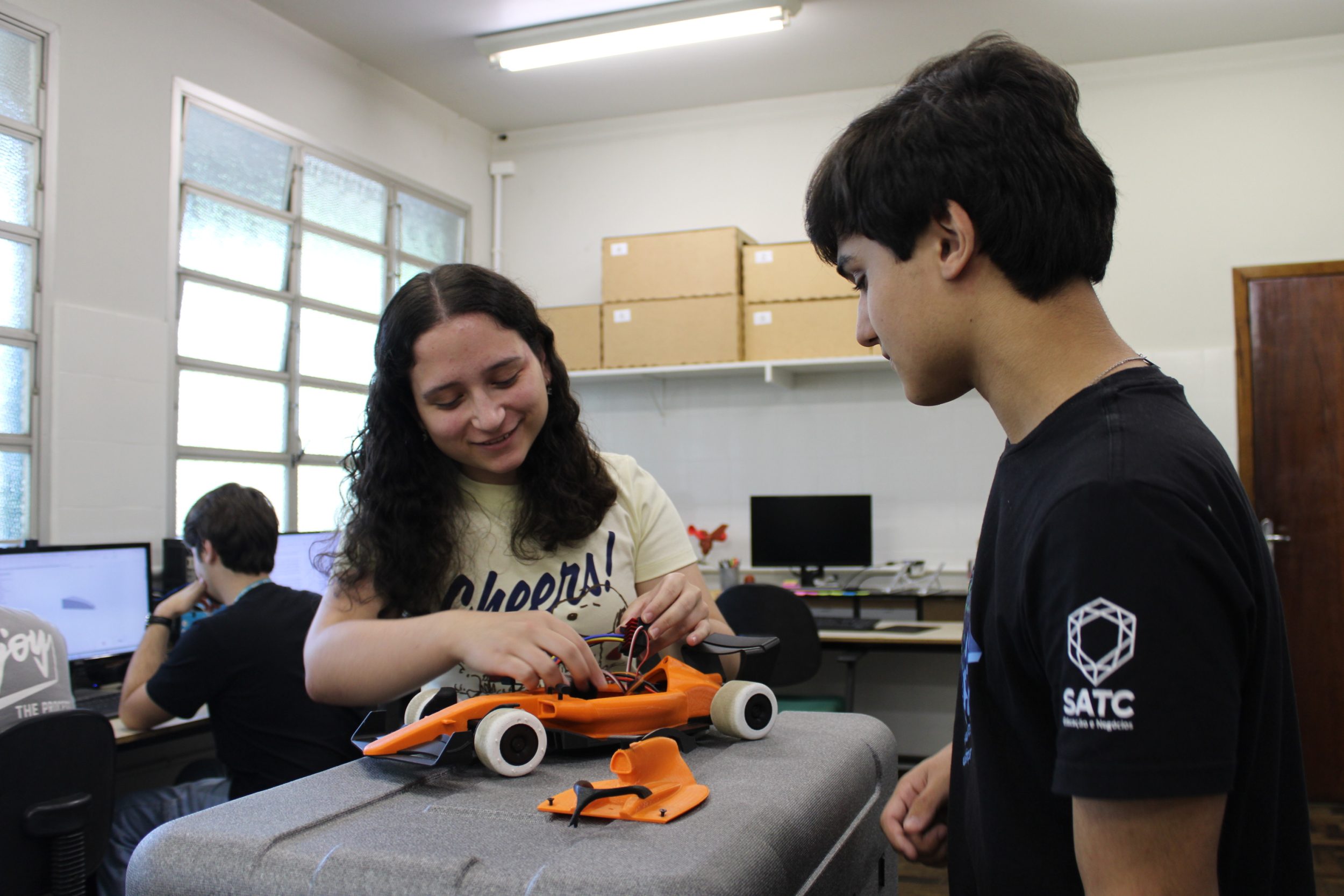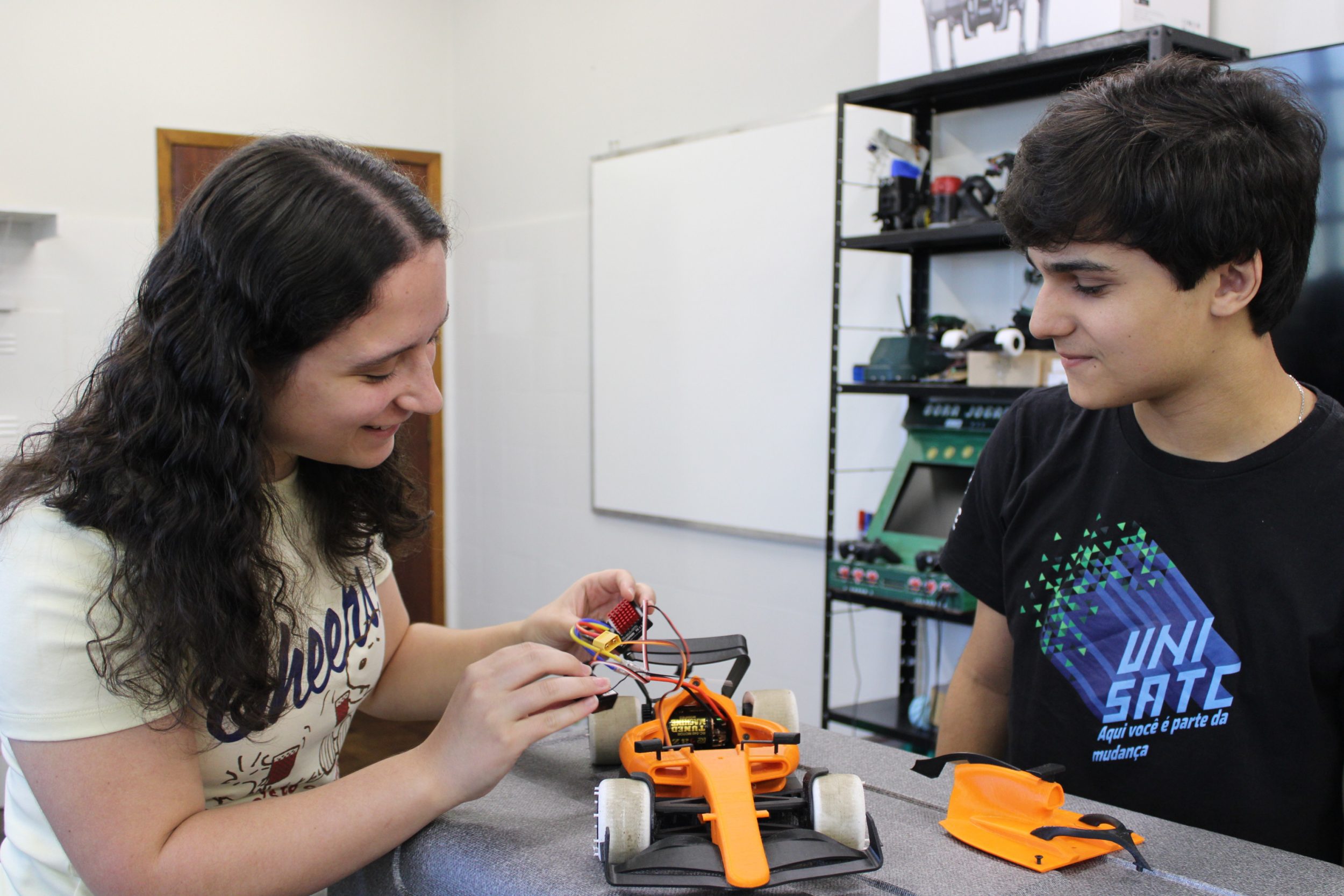 Projeto da SATC integra ensino técnico e graduação em Engenharia Mecatrônica na construção de um veículo inteligente. Alunos do técnico desenvolvem a parte mecânica, enquanto acadêmicos atuam na arquitetura eletrônica e programação. A iniciativa interdisciplinar une mecânica, eletrônica e inteligência artificial com foco em operação autônoma. Em fase piloto, o projeto promove troca de experiências e aproxima os estudantes de diferentes níveis de formação.