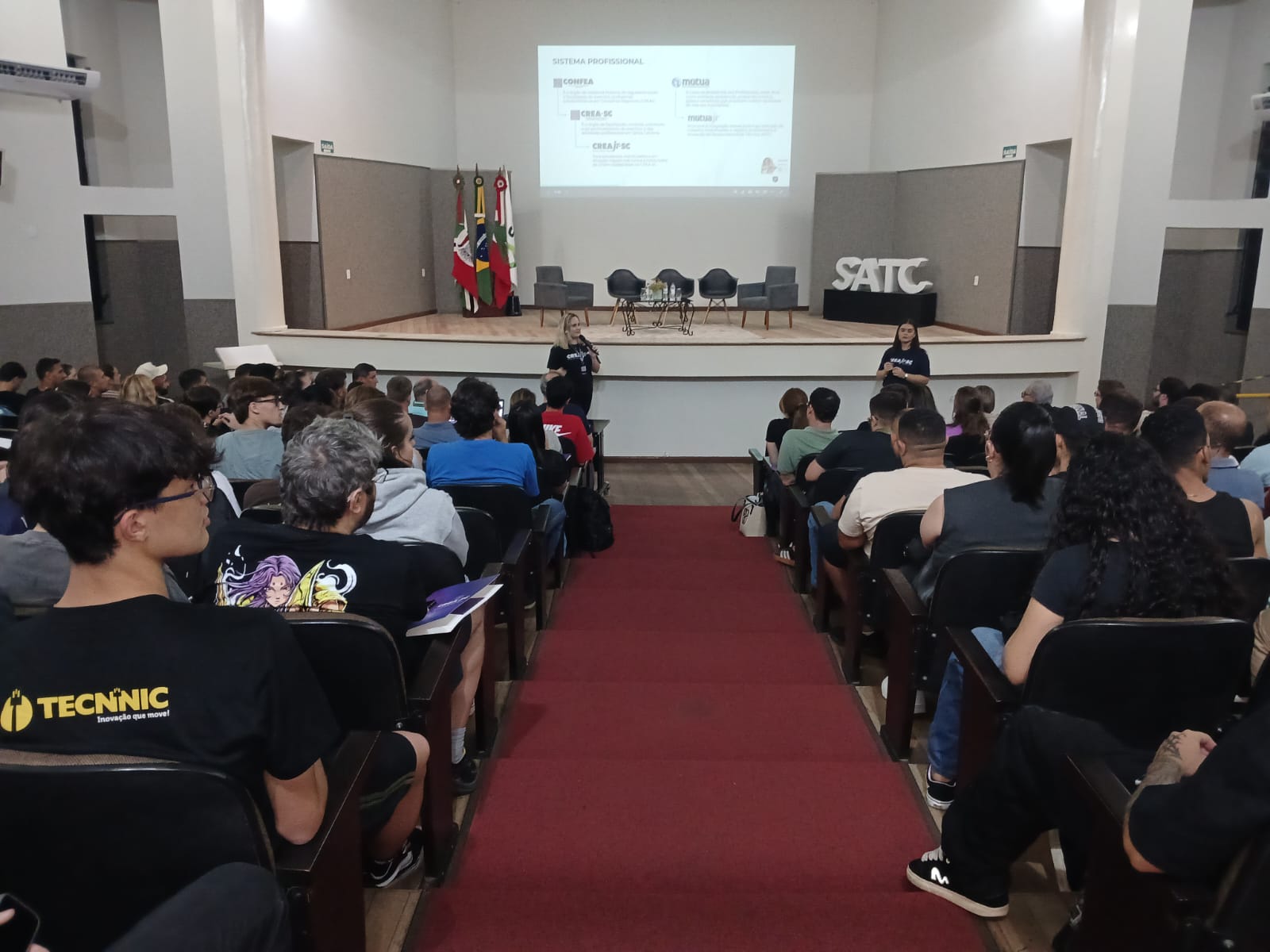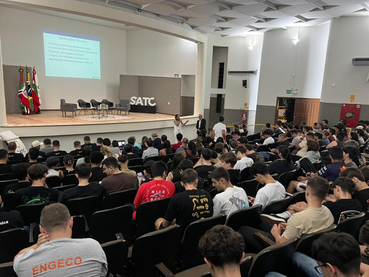 Para a 2ª vice-presidente do CREA-SC, Kamila Rodrigues da Silva, a presença no evento reforça o compromisso da entidade com a formação dos futuros profissionais. “O CREA-SC está presente na recepção dos calouros da UniSatc, um momento de grande importância para a Engenharia Catarinense. Essa participação reforça o valor que o Conselho atribui aos futuros profissionais desde o início de sua trajetória acadêmica, demonstrando apoio e incentivo à profissão escolhida”, destacou.