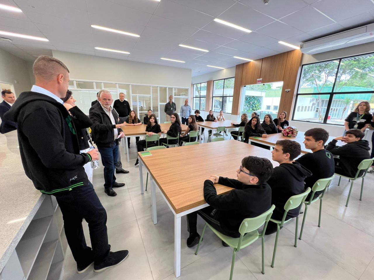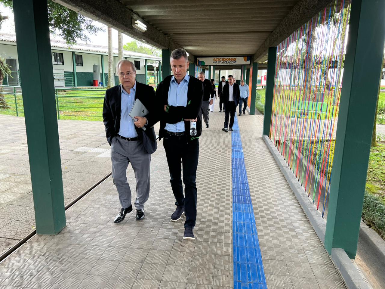 Durante a visita, Ricardo percorreu os corredores da escola, conversou com diretores e conheceu projetos voltados à inovação, transição energética e cibersegurança. Em um momento simbólico, recebeu sua ficha original de aluno e uma jaqueta da Satc, que fez questão de vestir.