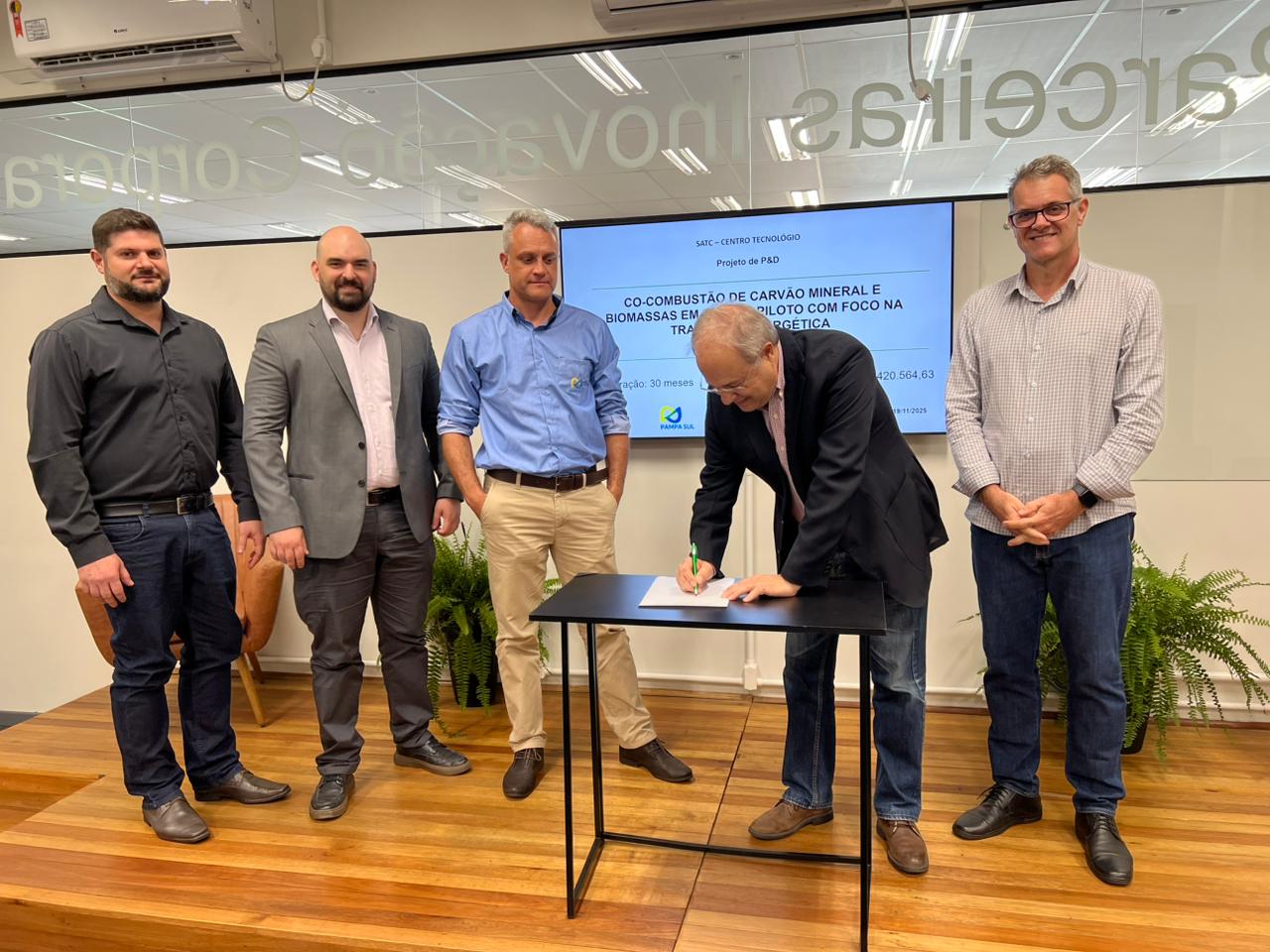A Satc e a Usina Termelétrica Pampa Sul oficializaram, no Centro Tecnológico da Satc, a parceria para o desenvolvimento do projeto “Co-combustão de Carvão Mineral e Biomassa em Escala Piloto com Foco na Transição Energética”. A iniciativa integra o Programa de P&D da Agência Nacional de Energia Elétrica (ANEEL) e conta também com a participação da COPPE/UFRJ.
