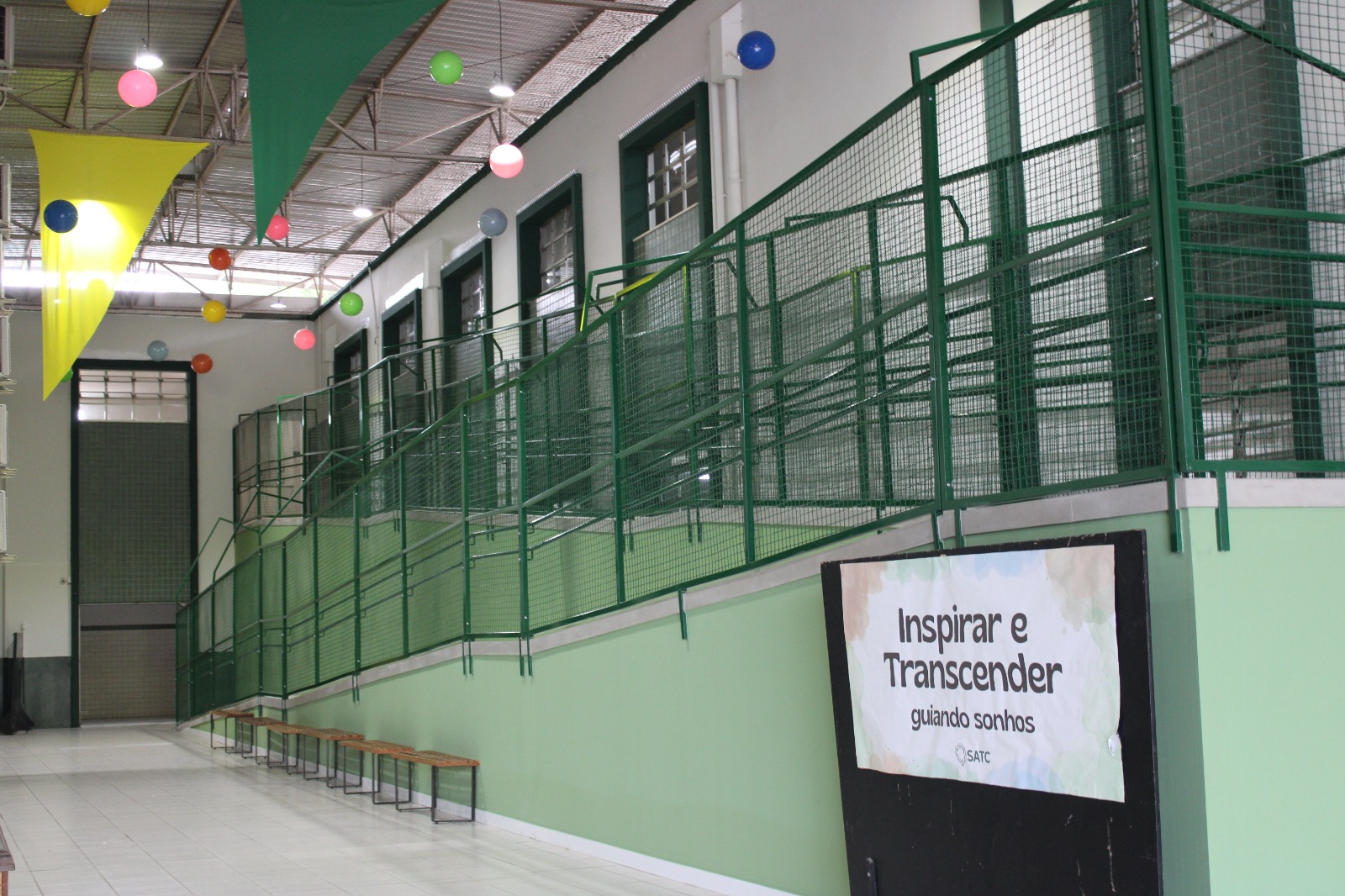 Já na parte do fundamental, duas obras maiores se destacam: a extensão da cobertura metálica do teto, ao lado da padaria Doce Pão e a rampa de acessibilidade que leva às salas de aula do 1º andar. “A telhado foi construído para deixar o espaço mais seguro, pois nos dias de chuva ficava escorregadio para os alunos. A rampa, que também fica naquela área, ajudou principalmente na acessibilidade. E vai auxiliar também a locomoção das crianças com relação às mochilas de rodinhas por conta do peso, para uma chegada mais tranquila nas salas”, frisa o profissional.