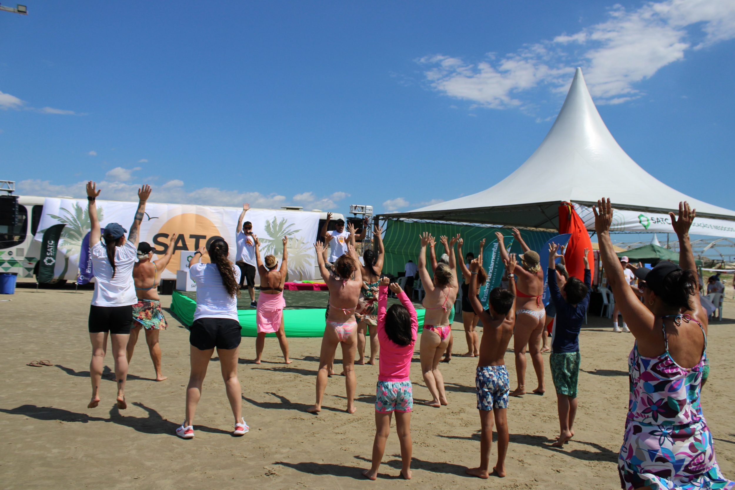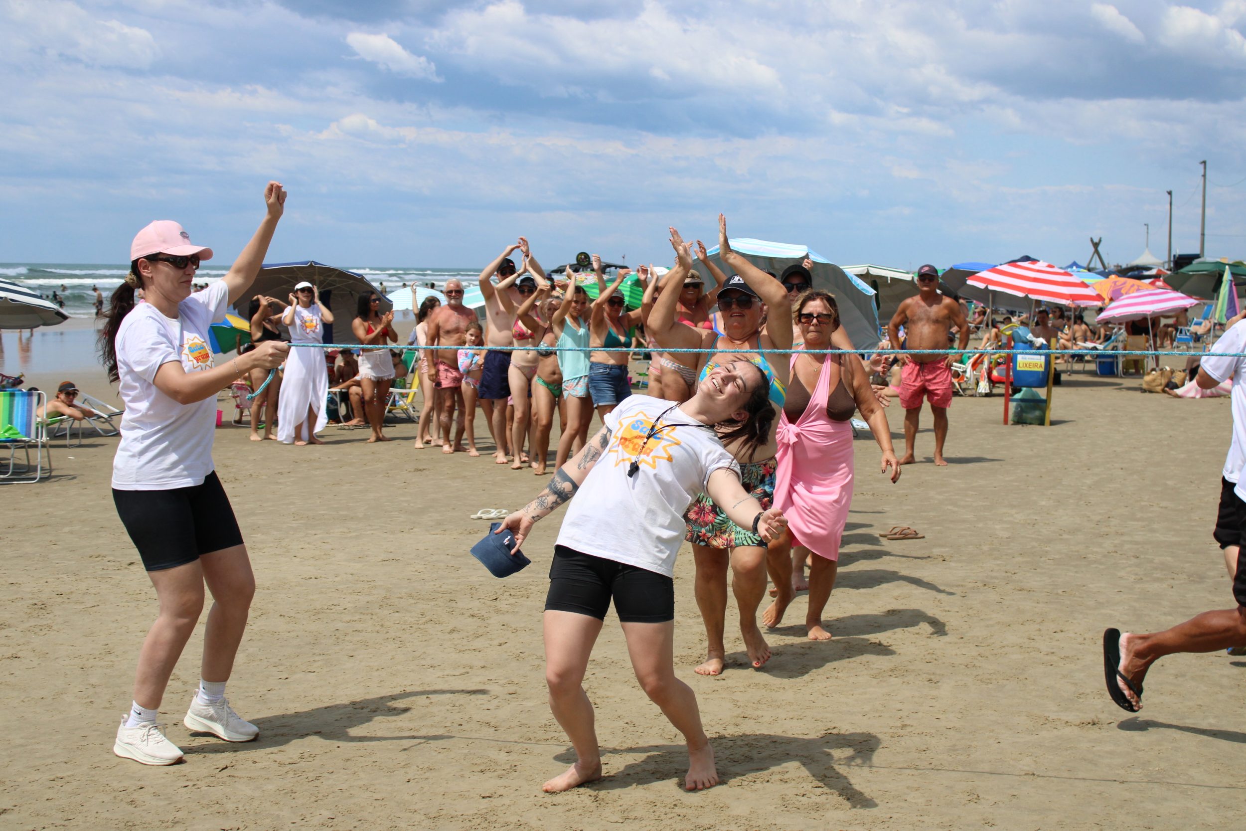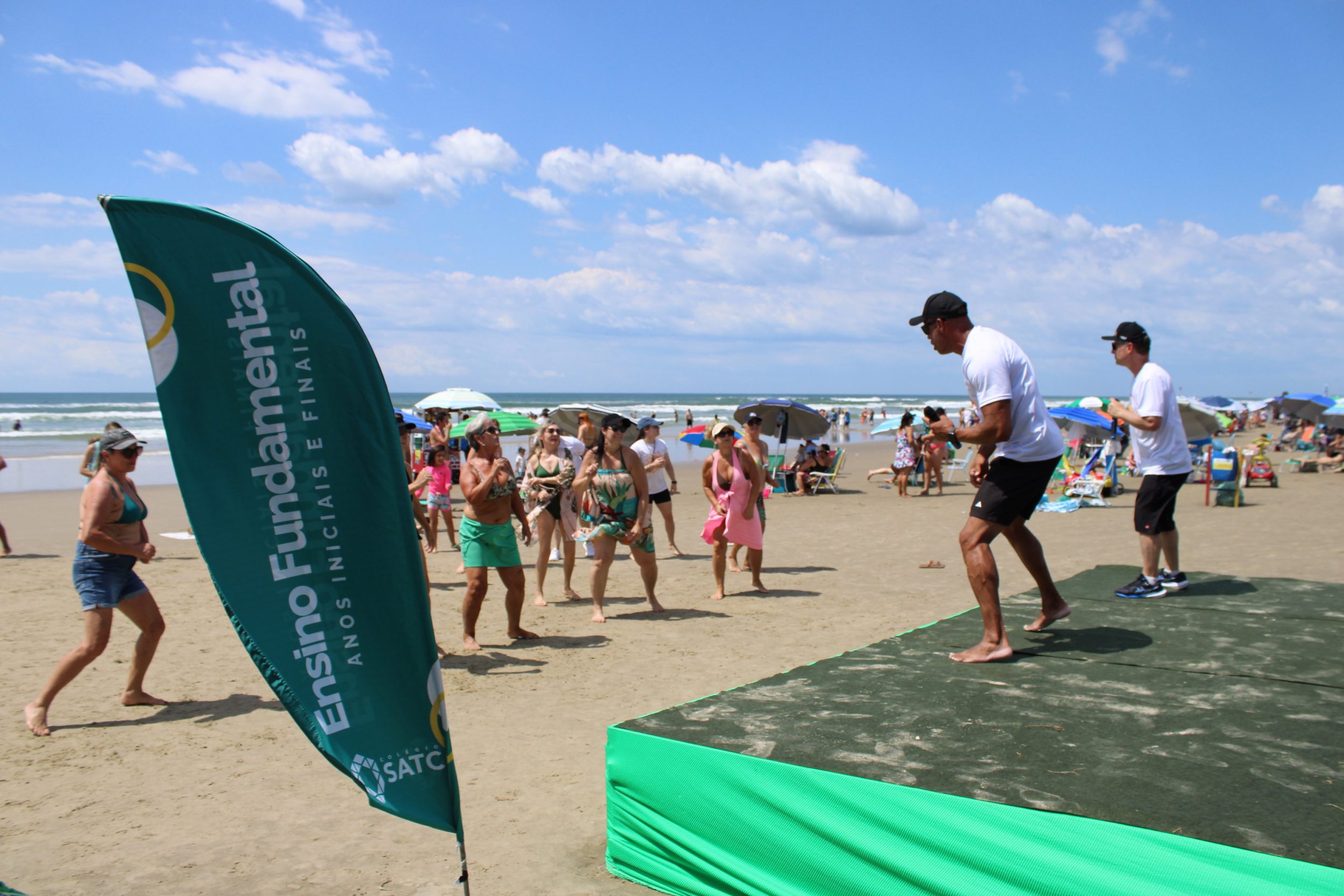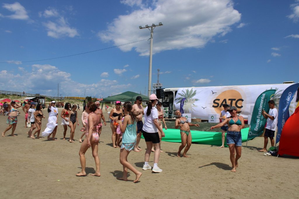 O Satc na Praia 2026 tomou conta da orla da Zona Sul do Balneário Rincão na manhã deste sábado (3). Com a presença de famílias inteiras, o encontro transformou a beira-mar em um espaço de convivência, onde crianças, adolescentes, adultos e idosos participaram juntos das atividades propostas.