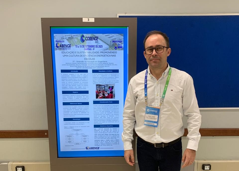 A UniSatc marcou presença no 53º Congresso Brasileiro de Educação em Engenharia (Cobenge), realizado na PUC de Campinas (SP). O evento, considerado o maior do país na área, foi o palco da apresentação do artigo “Educação e Sustentabilidade: promovendo uma cultura de eficiência energética nas escolas”, produzido pelo curso de Engenharia Elétrica.